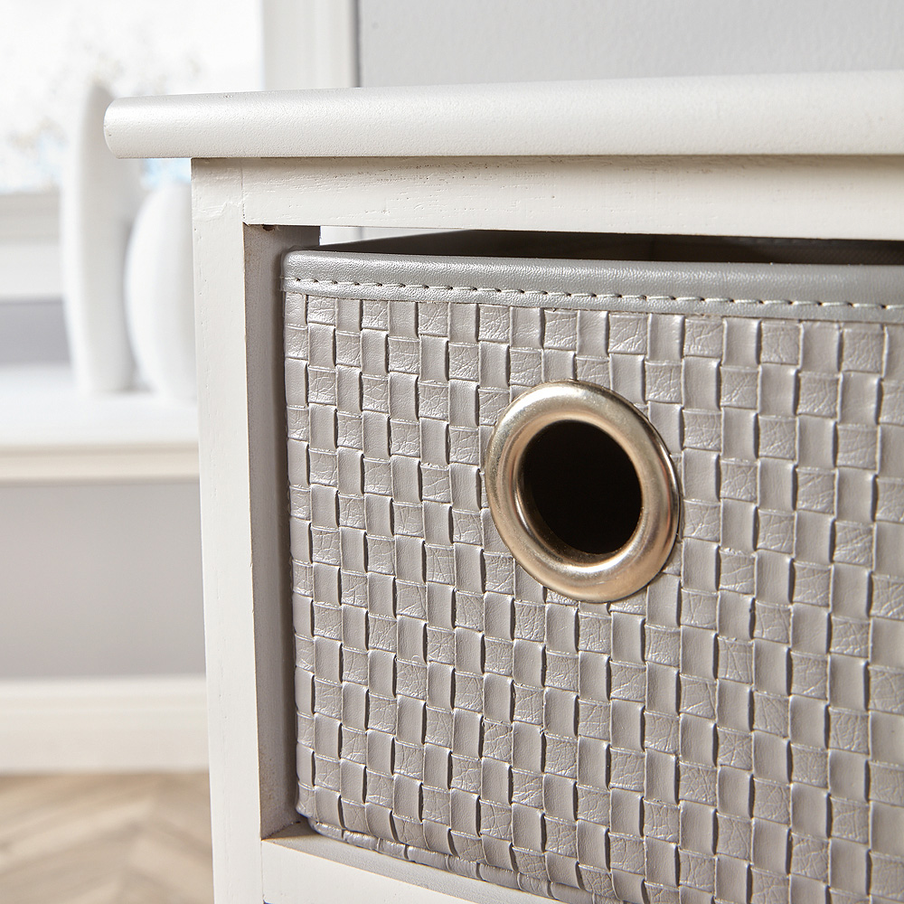 The Sandringham four-drawer storage chest unit offers a stylish storage solution for your home. Arriving fully assembled, this tall, slim unit is finished in sophisticated white and grey. The faux leather drawers are easily accessible thanks to their nautical porthole handles, adding a unique, coastal touch. Constructed from solid wood and MDF, this chest is as strong and sturdy as it is stylish, optimising space in any room without compromising on design.