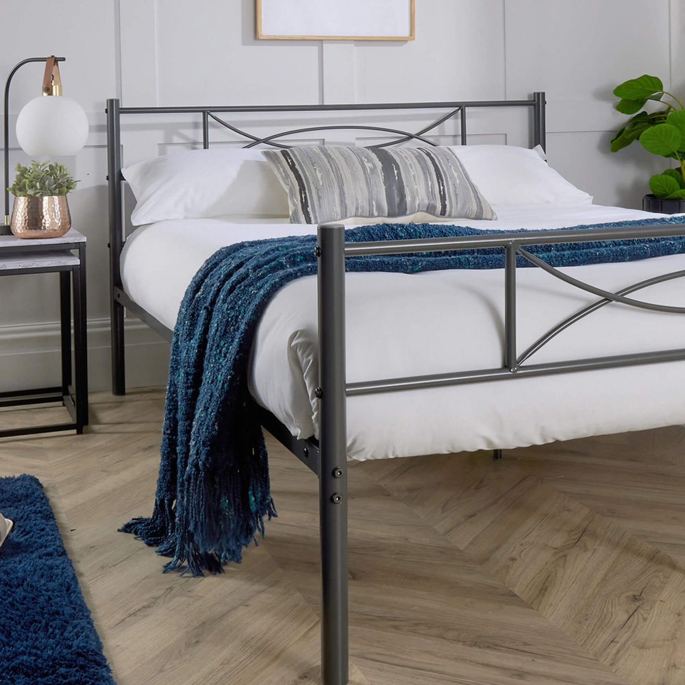 Home Source Saturn Small Double Metal Grey Modern Bed Frame