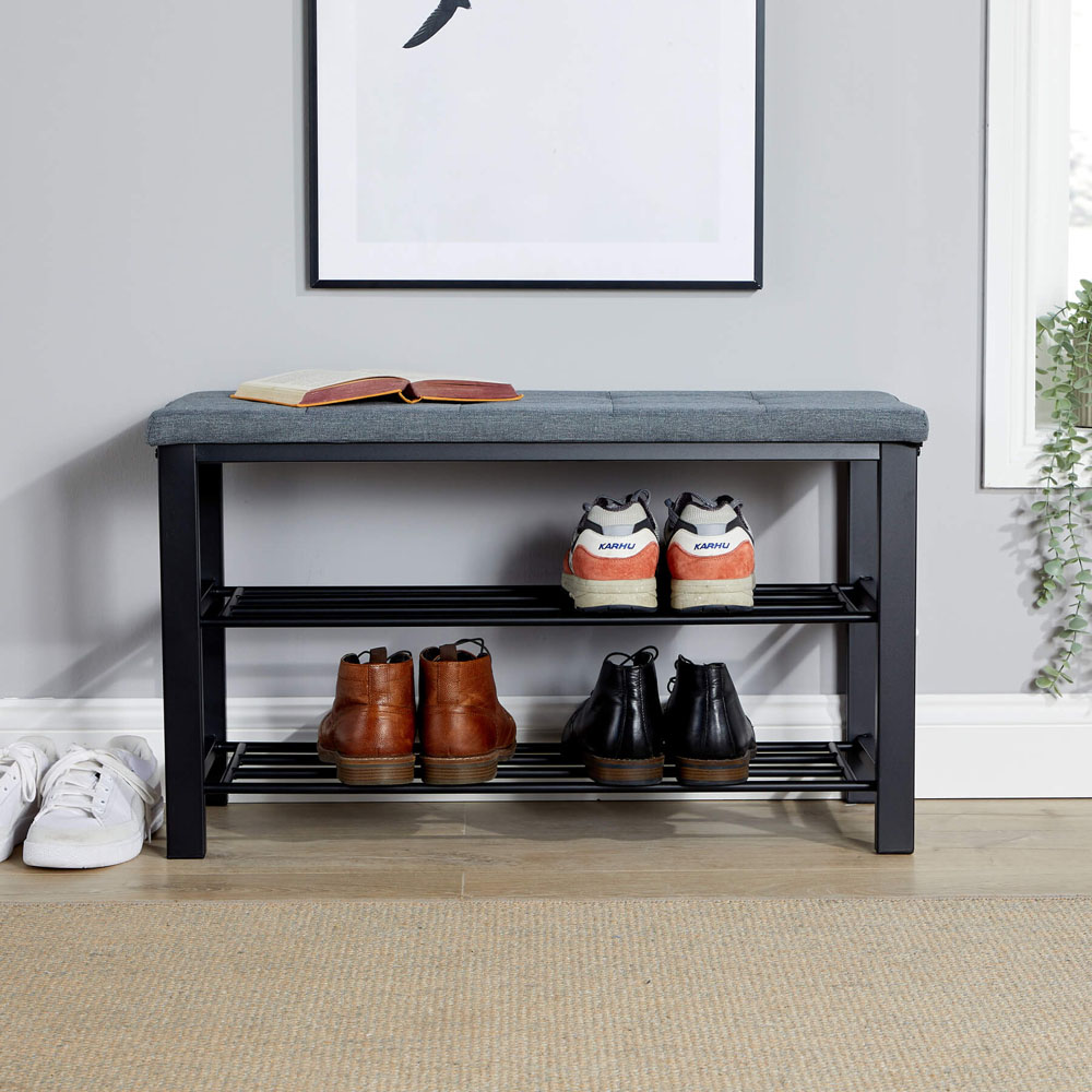 Home Source Sleaford Grey Linen Metal Shoe Bench