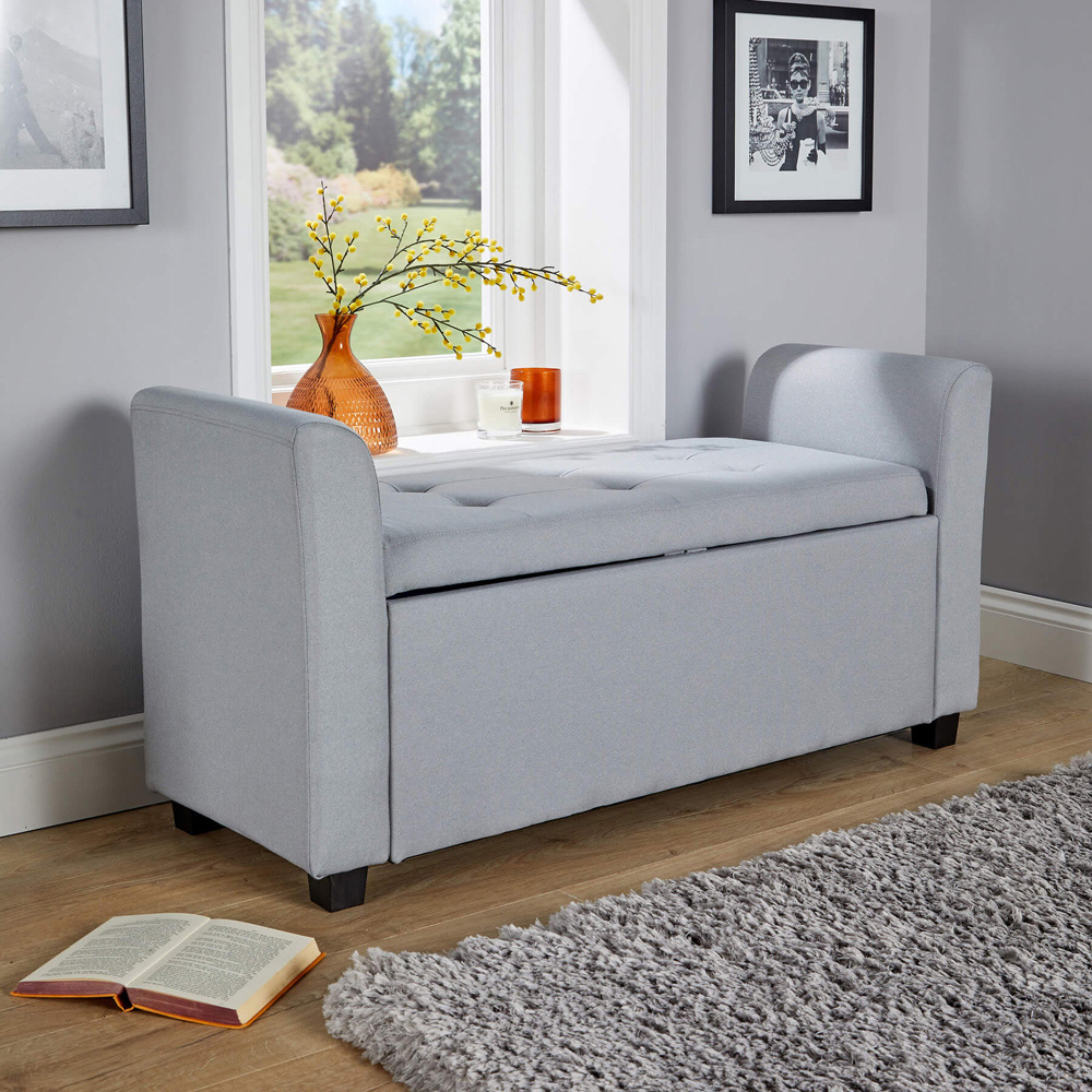 Home Source Verona Sleigh Style Light Grey 2 Seater Storage Bench