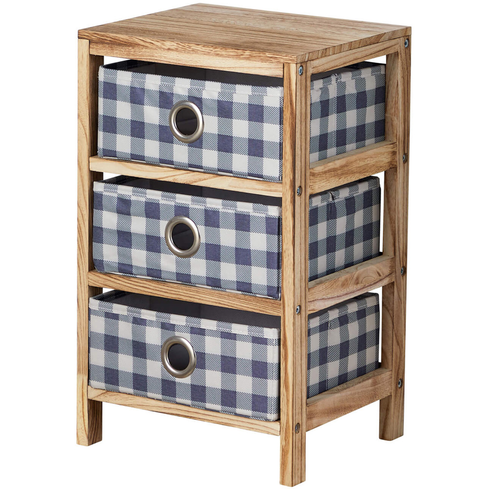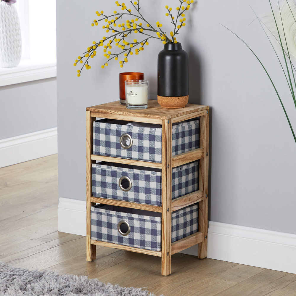 Need a spot to stash your stuff? The Weybourne Fabric 3 Drawer Storage Chest is just the ticket for keeping bedrooms, living rooms and hallways neat and tidy. Made with Paulownia solid wood and featuring a delightful plaid design, this storage chest brings a touch of charm while providing ample space for all sorts of bits and bobs. It's a space-saver too, with dimensions of 30cm wide, 25cm deep and 63cm high. Delivered flat packed for easy home assembly, it’s ready to help you get organised in no time.