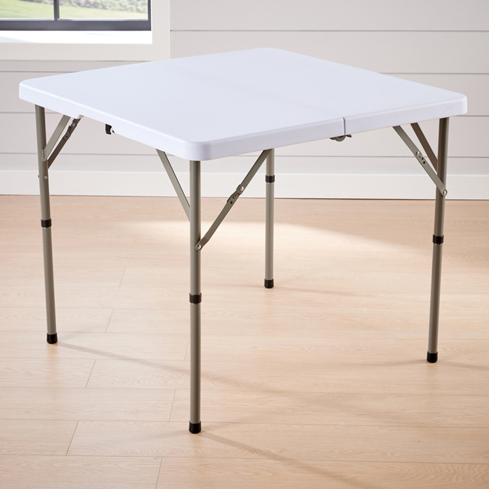 Need some extra table space? This square Trestle Table offers a practical solution for various occasions, be it entertaining at home, outdoor celebrations, car boot sales, picnics or sale events. The tabletop is crafted from white, hard-wearing, High Density Polyethylene (HDPE), ensuring it's easy to clean and maintain. The powder-coated steel tube legs offer long-lasting protection and are equipped with metal angled braces for enhanced strength and stability. Plastic feet are also included to prevent floor markings. This table requires no assembly and is incredibly simple to use. After use, it neatly folds into a compact carry case, allowing for convenient storage under a bed or in a garage or shed. The maximum weight capacity for this table is 100kg.