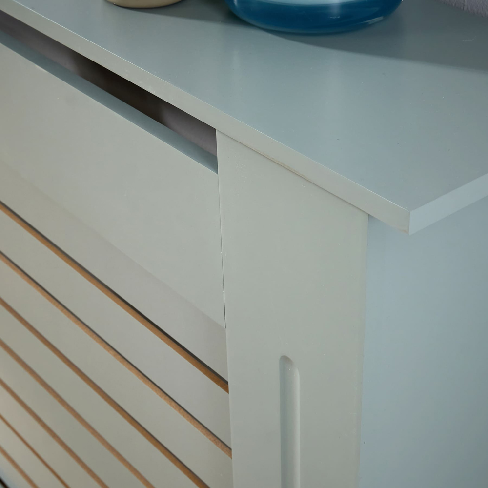 Bring a touch of elegance to your home with the York Extra Large Radiator Cover, finished in a refined grey tone. More than just a cover, this piece features a stylish flat top that provides a handy shelf for displaying your favourite ornaments, helping to keep your room clutter-free. The slatted grill design not only blends seamlessly with any décor but also ensures efficient heat circulation, offering an ideal way to conceal larger radiators without sacrificing warmth.