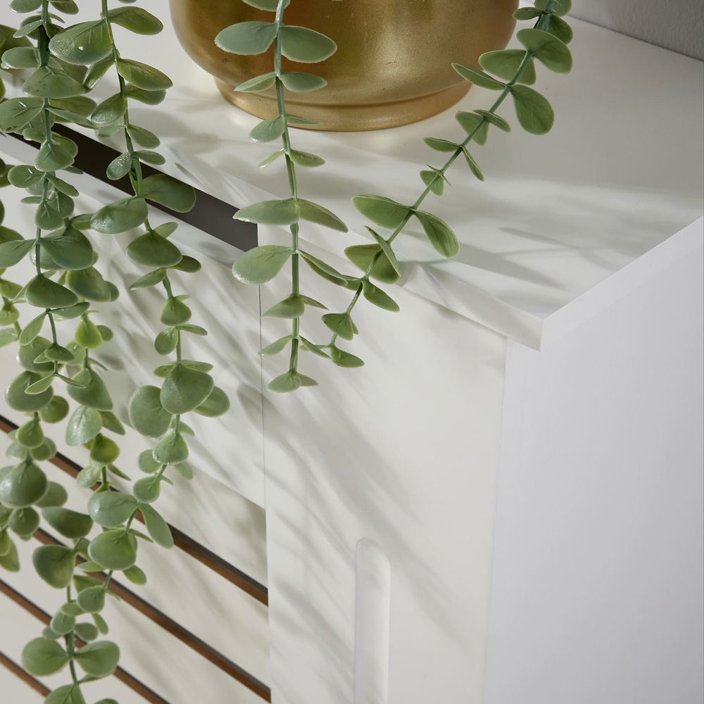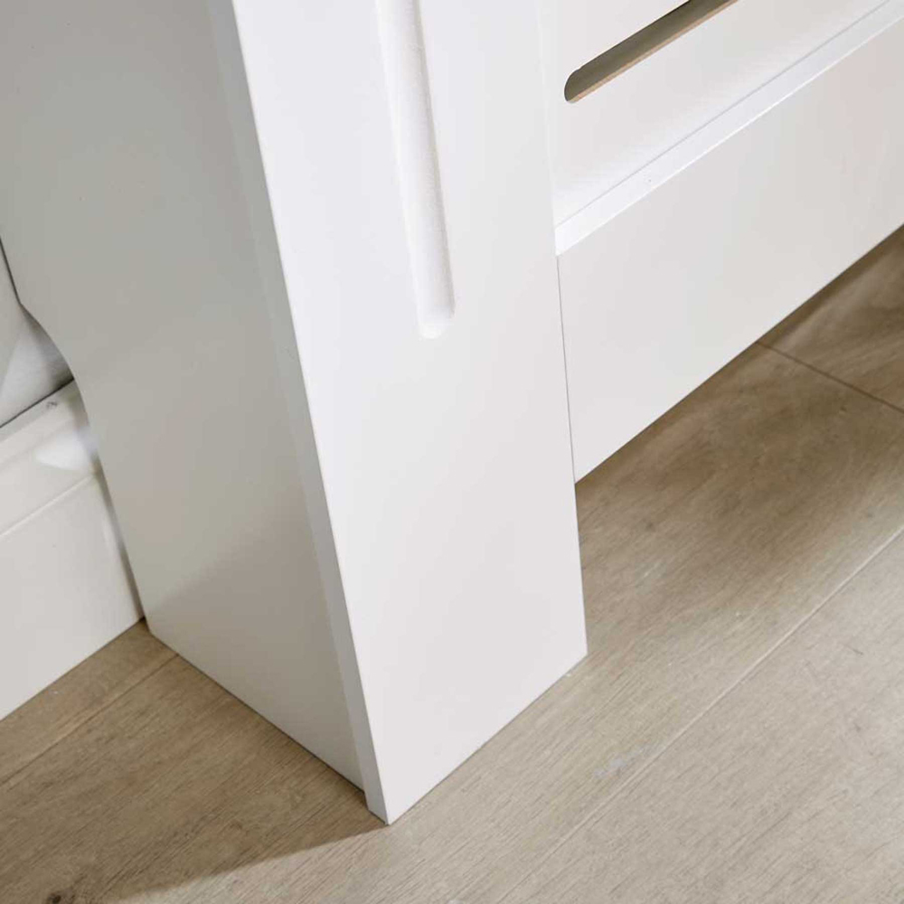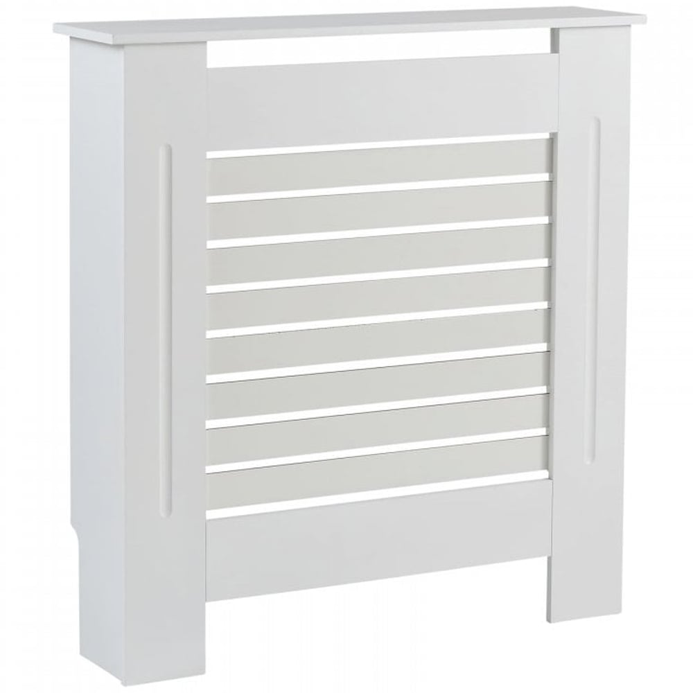 The York Extra Small Radiator Cover in White offers a stylish and practical solution for any room. This compact design, the smallest in the York range, features a clean white finish on high-quality MDF, ensuring it will complement any decor. The slatted grill not only enhances the look of your radiator but also allows heat to circulate effectively, warming your room while providing a useful flat surface for displaying your favourite ornaments. Delivered flat-packed for easy self-assembly. Dimensions: H82 x W78 x D19cm (H32 x W31 x D7 inch).