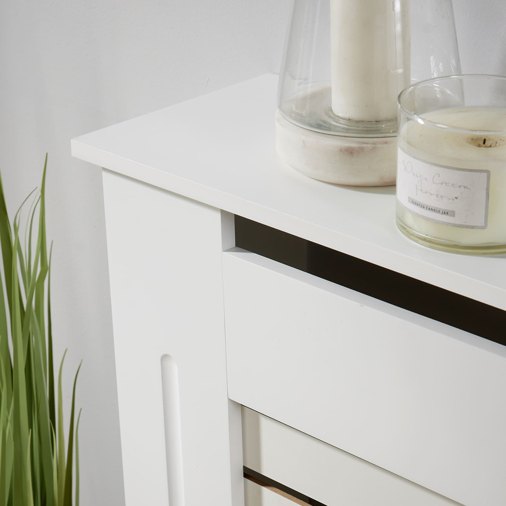 Give your radiator a stylish makeover with Home Source York White Radiator Cover Medium. Finished in a clean white, it complements any room decor while keeping things looking neat and tidy. Designed with a flat top, it doubles as a handy shelf for displaying decorations, plants, or everyday essentials. Made from strong materials, it is built to support for a long time. It also features slatted grill front that lets the heat flow through while keeping things looking neat. Whether in the hallway, living room, or bedroom, this cover is perfect for hiding an old radiator without blocking warmth. Freestanding and stylish, it is a simple way to upgrade your space without any hassle.
