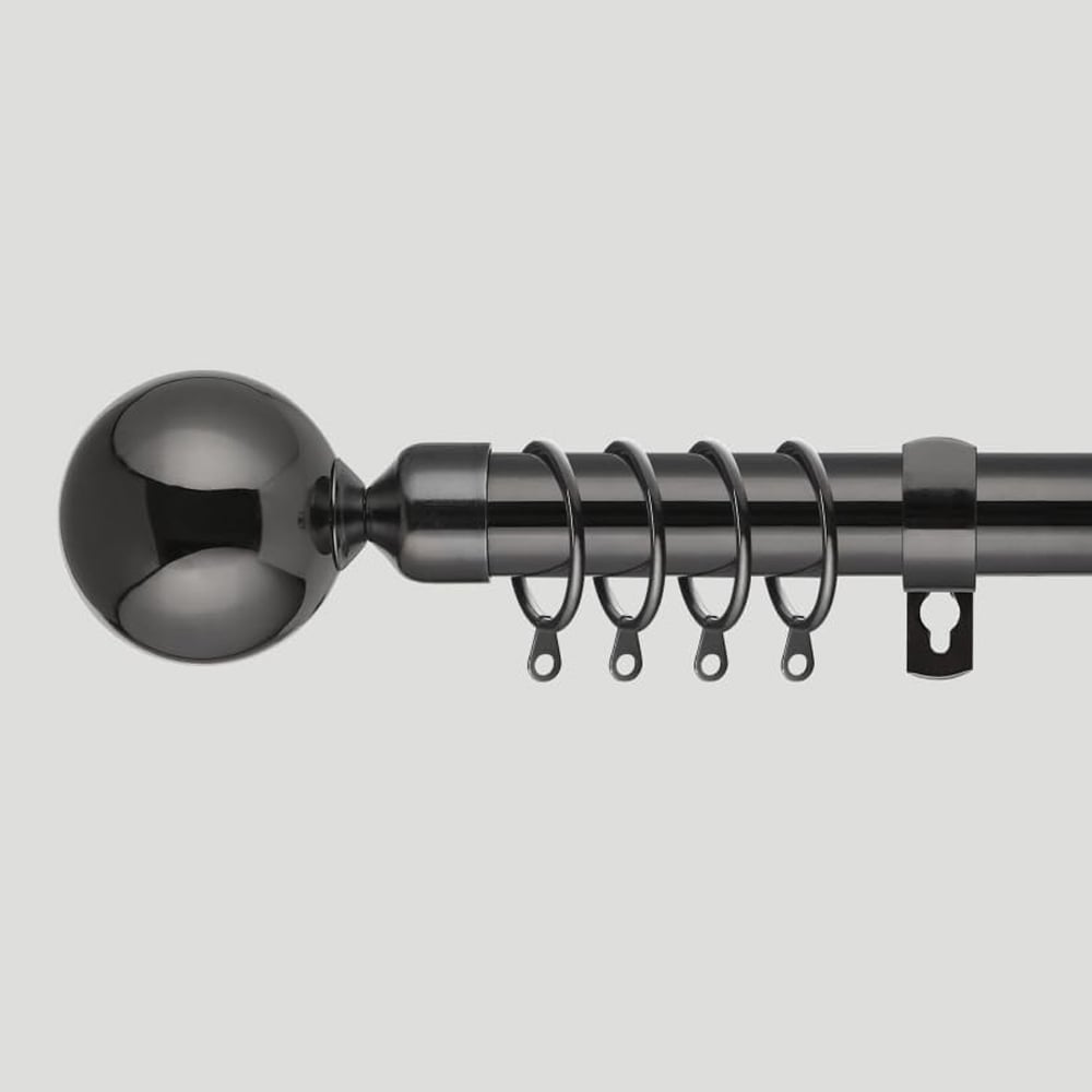 Enhance your window with this extendable metal curtain pole, boasting a high-shine finish for a touch of elegance. Adjustable from 40cm to 325cm (15" to 128") in 1cm increments, it ensures a perfect fit for your window. This complete set includes everything you need: pole, brackets, rings, finials, wall fixings, and instructions – all for a quick and straightforward installation. Crafted from high-grade, rust and corrosion-proof metal, the robust 25mm pole comfortably supports light to heavyweight curtains, drapes, voiles, fabrics, and nets. Achieve your desired length easily by screwing and telescoping the pole, securing it firmly with the eyelet brackets and tightening grub screw. The stylish finials complete the sophisticated look, adding a refined touch to any room.