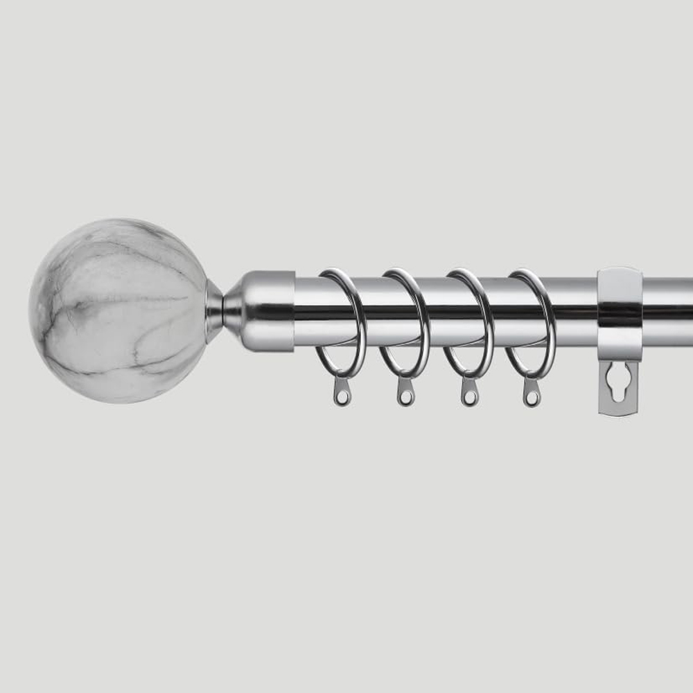 Enhance your window with this extendable metal curtain pole, boasting a high-shine finish for an elegant touch. Adjustable from 40cm to 325cm (15" to 128") in 1cm increments, it ensures a perfect fit. This complete set includes everything you need: the pole, brackets, rings, finials, wall fixings, and instructions. Crafted from high-grade, rust and corrosion-proof metal, its robust 25mm diameter supports light to heavyweight curtains, drapes, voiles, fabrics, and nets. Simple to install, the pole extends to your desired length, secured with eyelet brackets and a tightening grub screw. A stylish and practical solution for any room.