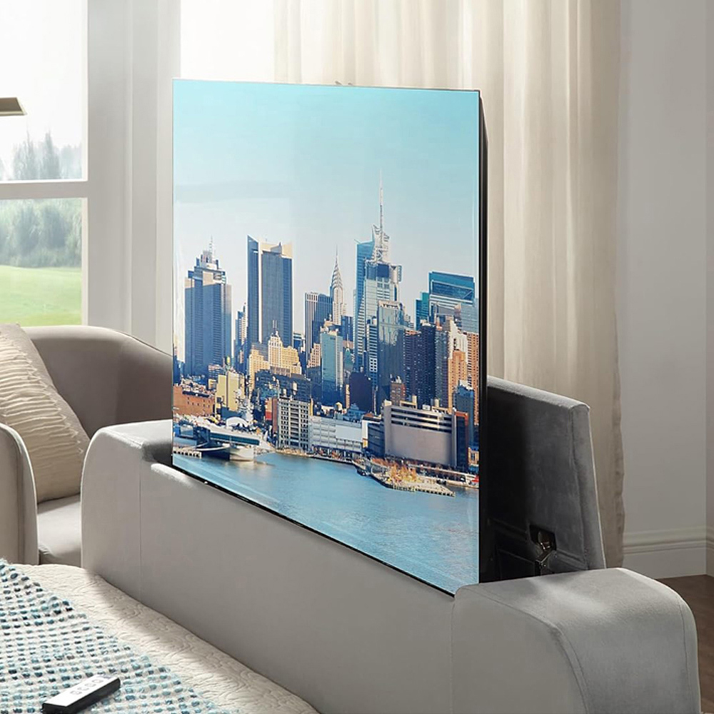 Complete your bedroom decor in style with this Home Treats Velvet King Size Ottoman TV Bed. Complete with electric remote control, the TV lift will rise, raising a TV out of the footboard with just the press of a button. Suitable for TVs up to 42 inches, it will seamlessly integrate into your bedroom decor. With a large storage area of up to 900 litres, it also offers a spacious side-opening gas-lift ottoman storage area that provides ample room for all your belongings. Made from wooden materials, the robust steel internal frame provides additional strength and stability to the furniture, ensuring that it can withstand heavy use over time. It has an upholstered padded bed frame to absorb and support weight, while the brushed velvet fabric on all sides offers a luxurious, plush soft touch finish. The padded bed frame provides not only comfort but also a stylish touch to any bedroom. Size: King.