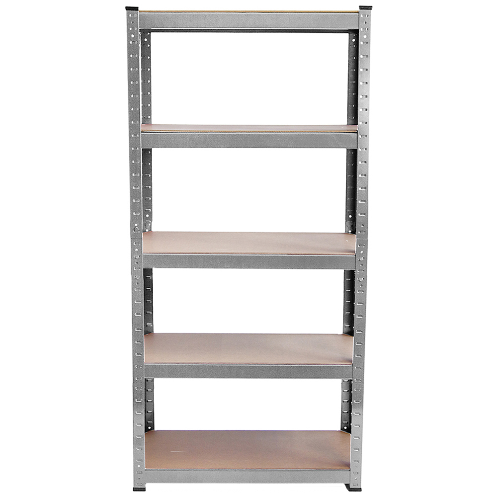 The Home Vida 5-Tier Galvanised DIY Large Shelf is a versatile storage solution. Five adjustable MDF shelves provide ample space, while the sturdy steel frame and moulded feet ensure stability and durability. Perfect for warehouses, garages, stockrooms, or kitchens, this shelving unit can be easily reconfigured into two separate units, a bench, or a corner unit. Its impressive 175kg weight capacity allows for confident storage of even the heaviest items.