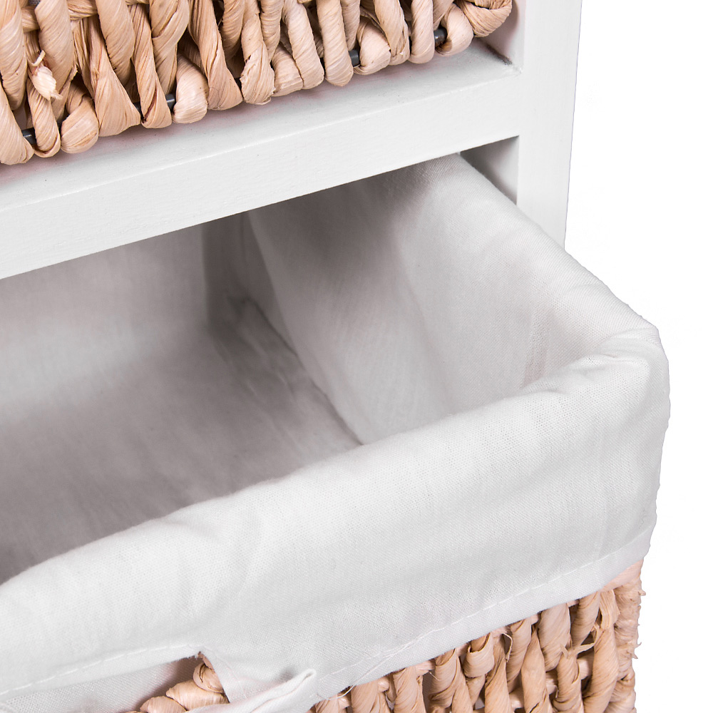 Maximize your home's storage potential with the Home Vida Maize Storage Unit. This stylish three-drawer unit boasts a robust wooden frame, finished in a crisp white. Each of the three maize baskets features convenient inset handles and removable fabric linings for easy cleaning and organisation. Perfect for any room, from bedrooms to bathrooms, this versatile unit keeps your belongings neatly tucked away, ideal for holding a variety of items, from clothing and linens to toiletries and accessories.