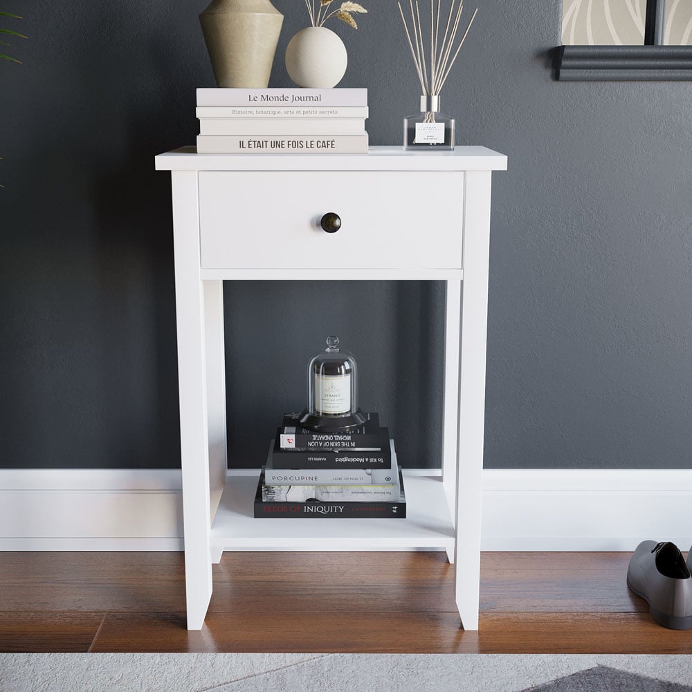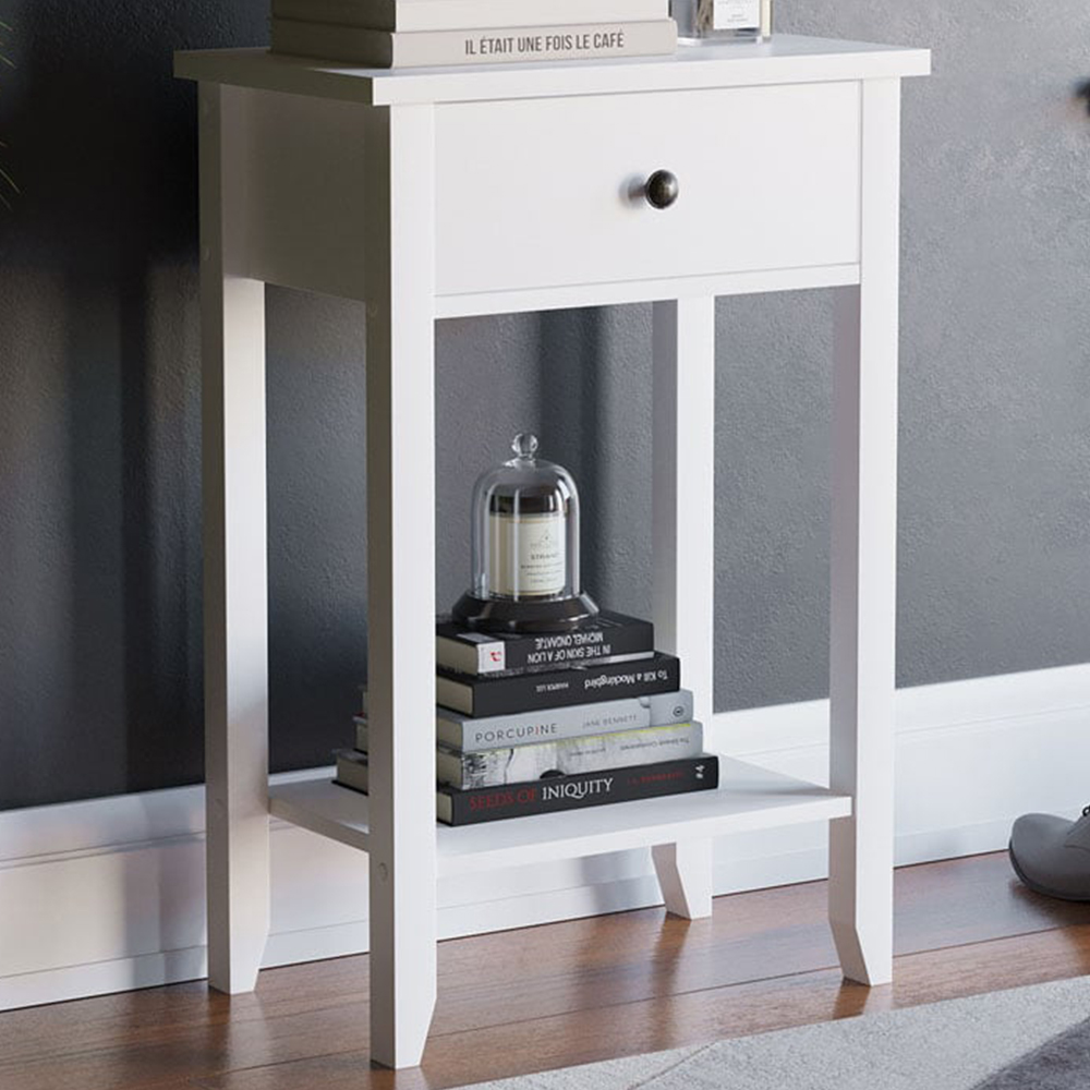 Introduce a touch of elegance to your living space with the Windsor Console Table, a stylish and functional addition to any home. Featuring one drawer for organised storage of essentials, plus a convenient shelf underneath for displaying your favourite items or extra storage space. The clean, white finish and sleek design effortlessly blend with any décor, making it ideal for hallways, entryways, or living rooms. Dimensions: H74 x W50 x D30cm.