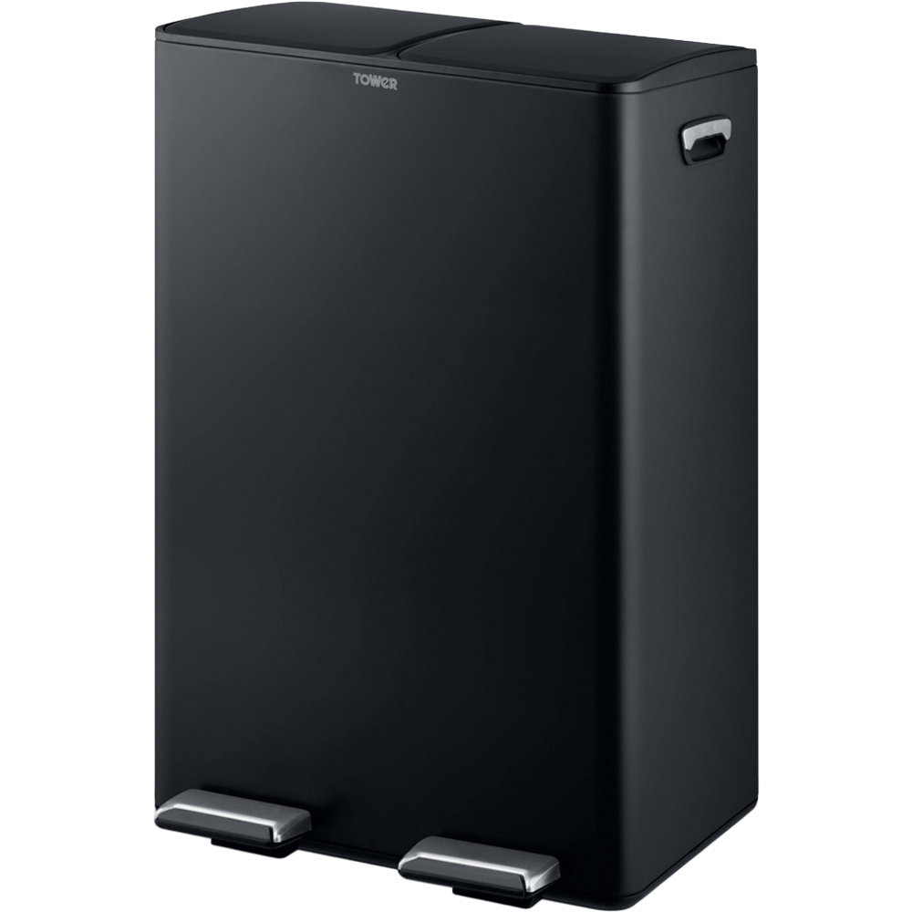Tower Black Double Recycling Pedal Bin 60L