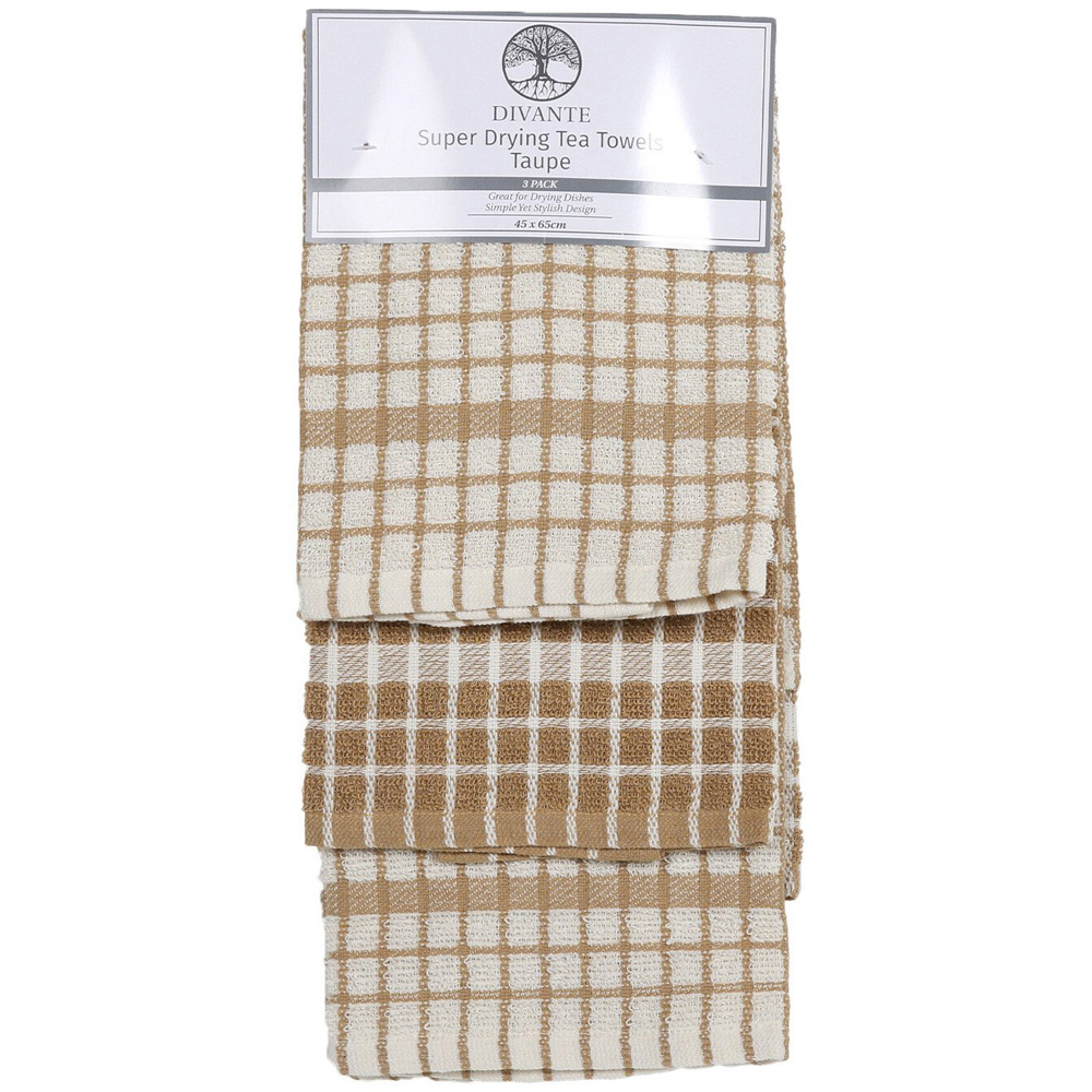 Divante 3 Pack Taupe Super Drying Tea Towel