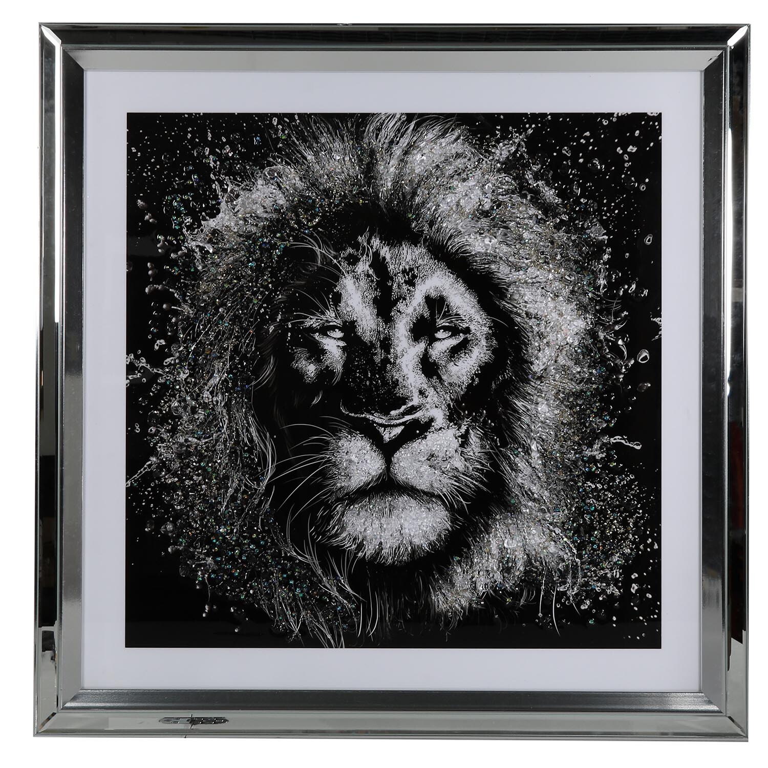 Monochrome Lion Jewelled Wall Art 80 x 80cm