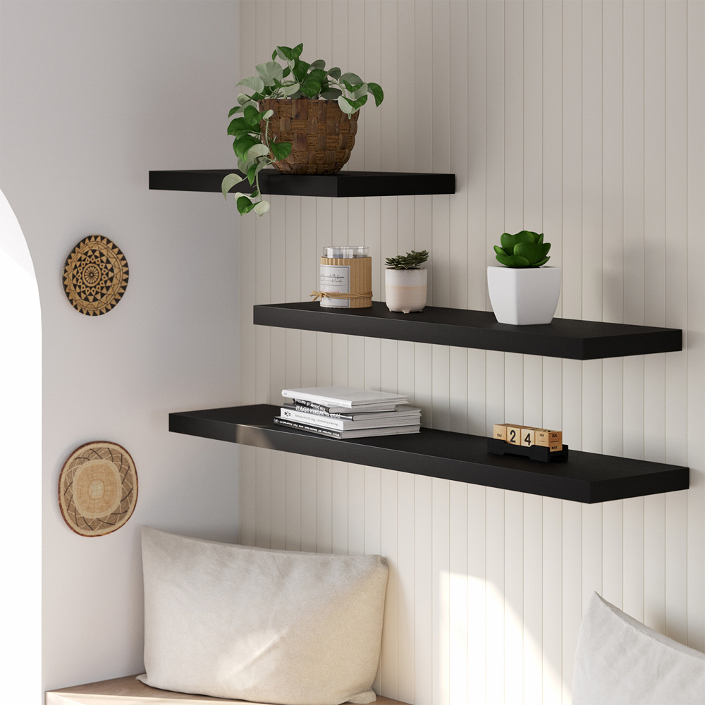 Homebase 120cm 2 Pack Black Ash Effect Floating Shelf