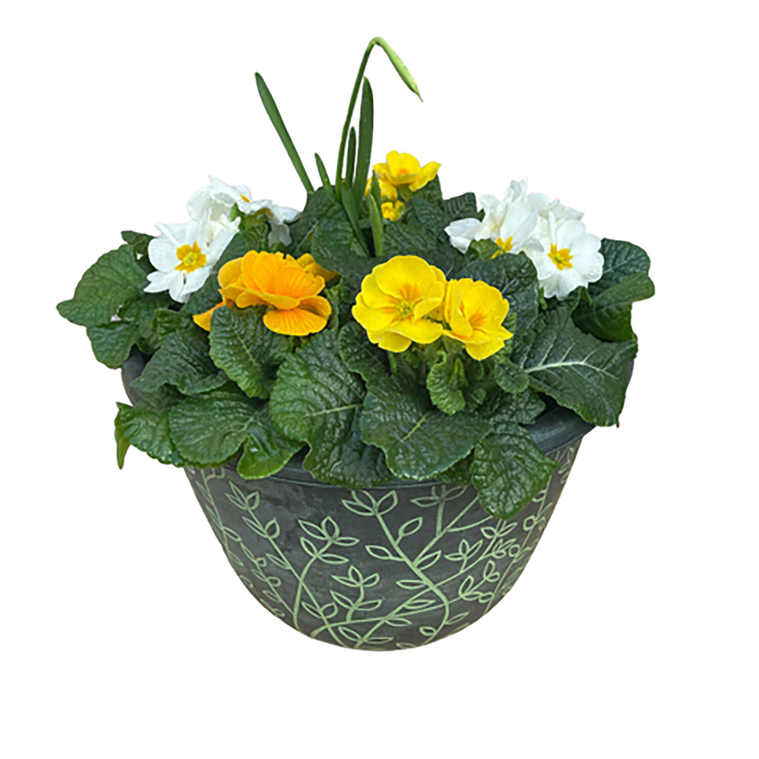 Brighten your home with the vibrant Citrus Mix Planter. A cheerful arrangement of yellow, white, and orange primroses, nestled amongst lush green foliage, instantly adds life to any room. This 30cm planter thrives in six to eight hours of indirect sunlight, making it ideal for balconies or shaded garden areas. Watch your primroses flourish in their perfect spot.