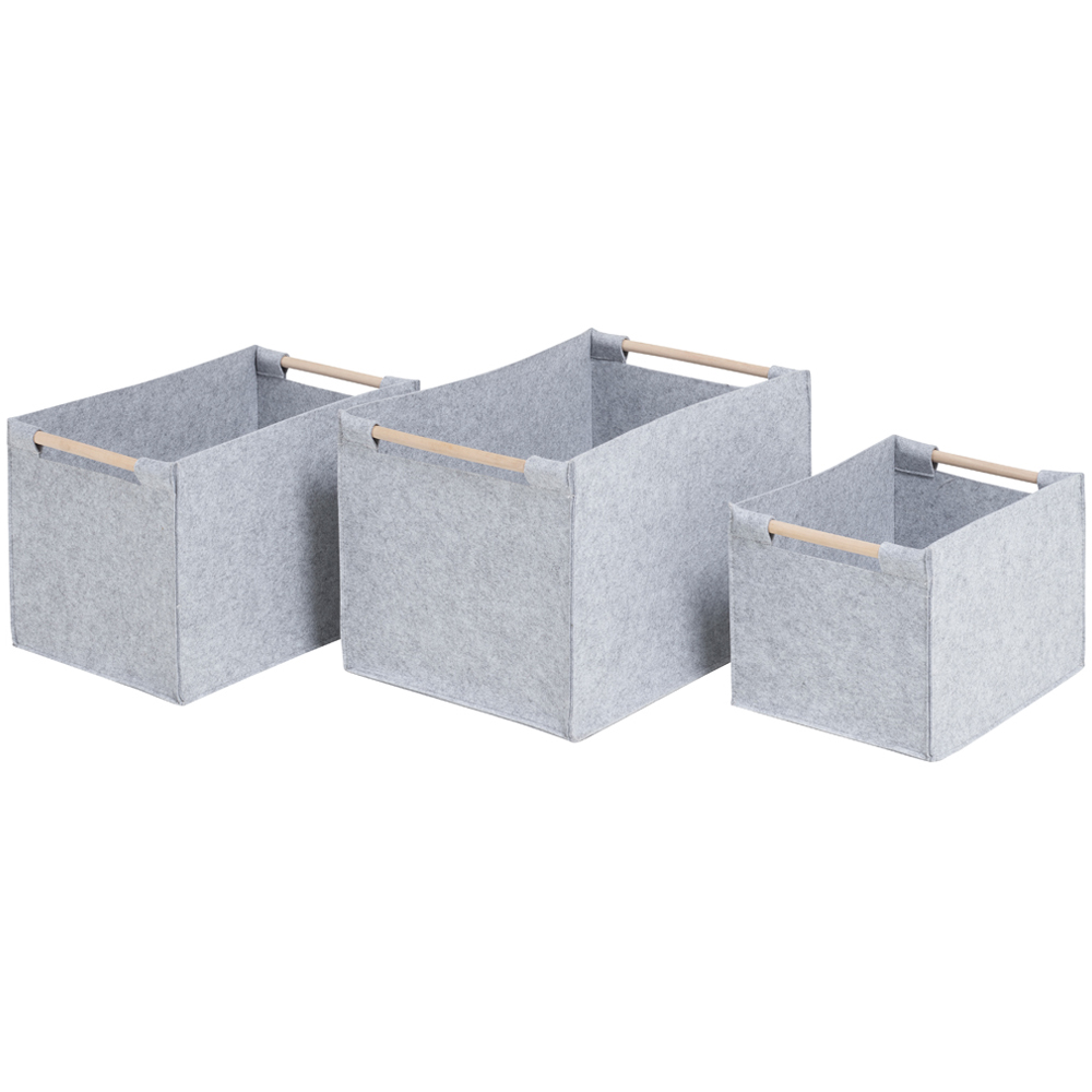 Homebase Grey Felt Storage Basket with Wooden Handles Set of 3