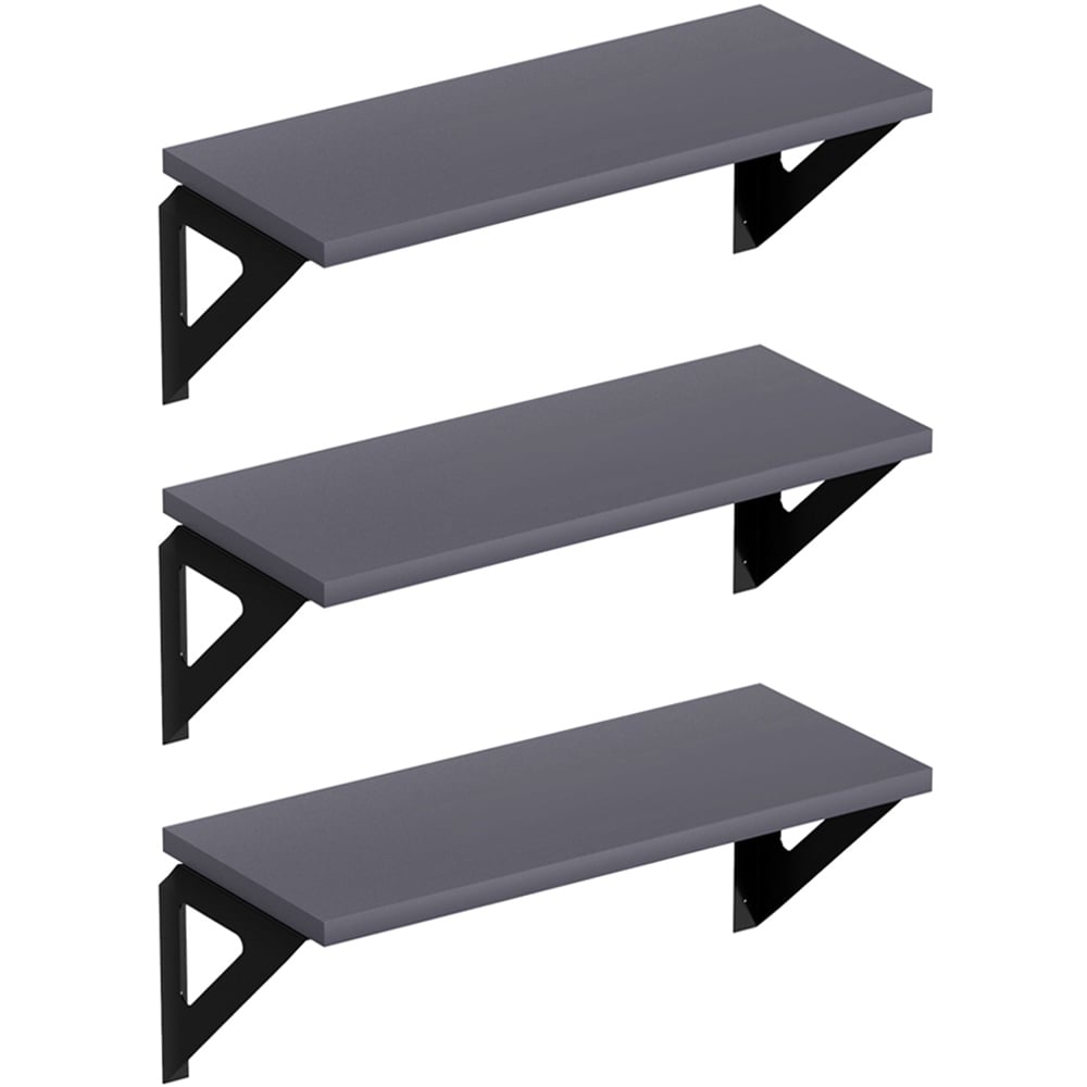 Homebase Grey Mini Shelf with Black Brackets 3 Pack