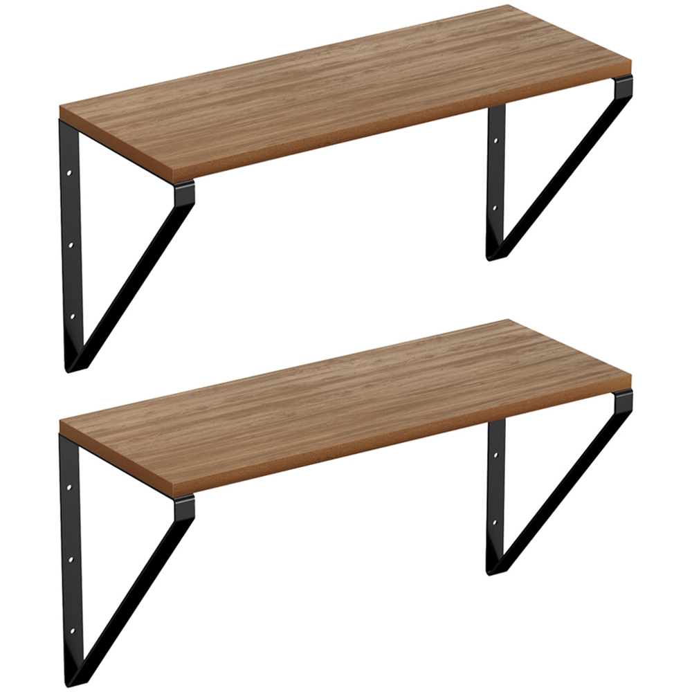Stay organised and enhance your space with the versatile 2 Pack Hanging Shelf Kit in Mango Wood Effect. Perfect for any room, this kit offers a chic industrial look with its black brackets and light oak effect shelves. Whether you choose to place the shelf above the brackets or let it hang below, this kit provides flexibility to suit your style and needs. With a maximum loading weight of 5kg when evenly distributed, it's ideal for displaying books, plants, or decor items.