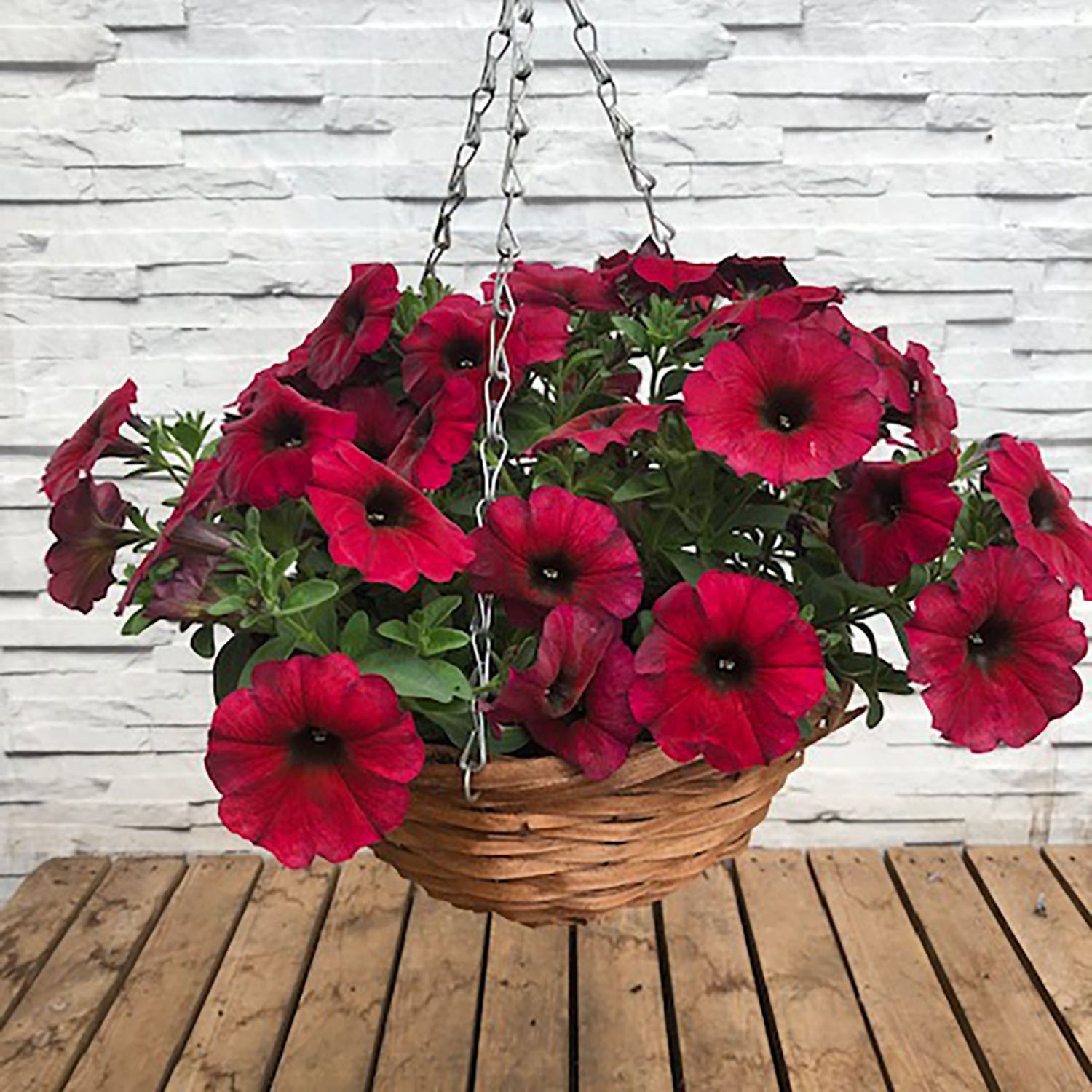 Add a touch of rustic charm to your outdoor space with the Petchoa Bordeaux Rattan Hanging Basket. This delightful basket features a rattan-style design, creating a welcoming, homely feel. Beautifully showcasing a vibrant arrangement of Petchoa Bordeaux flowers, it's perfect for brightening up porches, patios, or gardens.