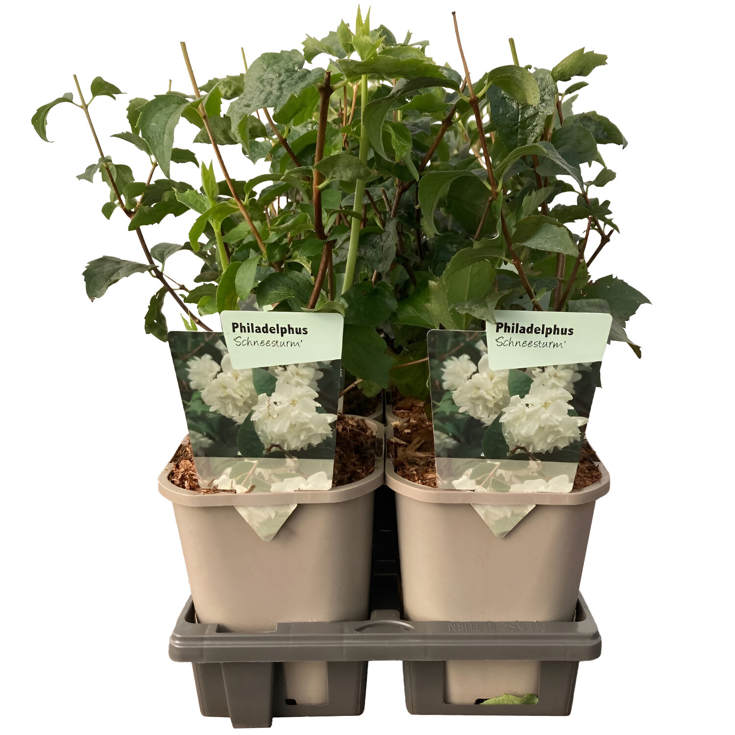 A show-stopping shrub, the Philadelphus Schneesturm boasts exquisitely fragrant, pure white flowers. Perfect for borders or as a statement piece, its lush green foliage provides a stunning backdrop to the blooms. Attracting butterflies and pollinators, this small deciduous shrub offers a captivating sensory experience for your garden.