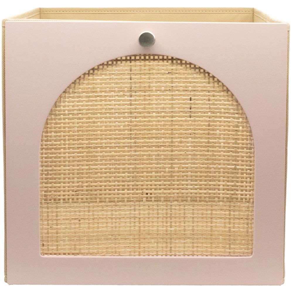 Homebase Timber Fronted Dusky Pink Rattan Cube Storage Insert 2 Pack