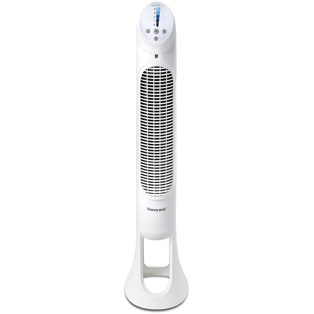 Experience blissful comfort with the Honeywell QuietSet 40-inch Tower Fan. Effortlessly cool your entire room with 80-degree oscillation and five customizable speed settings. A convenient timer function allows you to pre-set the fan to turn off automatically after 1, 2, 4, or 8 hours. Enjoy the automatic dimming light feature, which subtly reduces brightness to 50% after 15 seconds. A remote control, conveniently stored on the fan's rear, makes operation simple. Assembly is a breeze—no tools required.