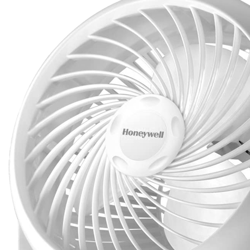 This 11-inch Honeywell Turbo Force desk fan is your personal cooling companion. Enjoy three speed settings for the perfect airflow, reaching up to 25 feet. Its pivoting head with a 90-degree tilt ensures optimal comfort, making it ideal for any workspace or room, whether used as a desktop fan, wall-mounted fan, or for general room circulation.