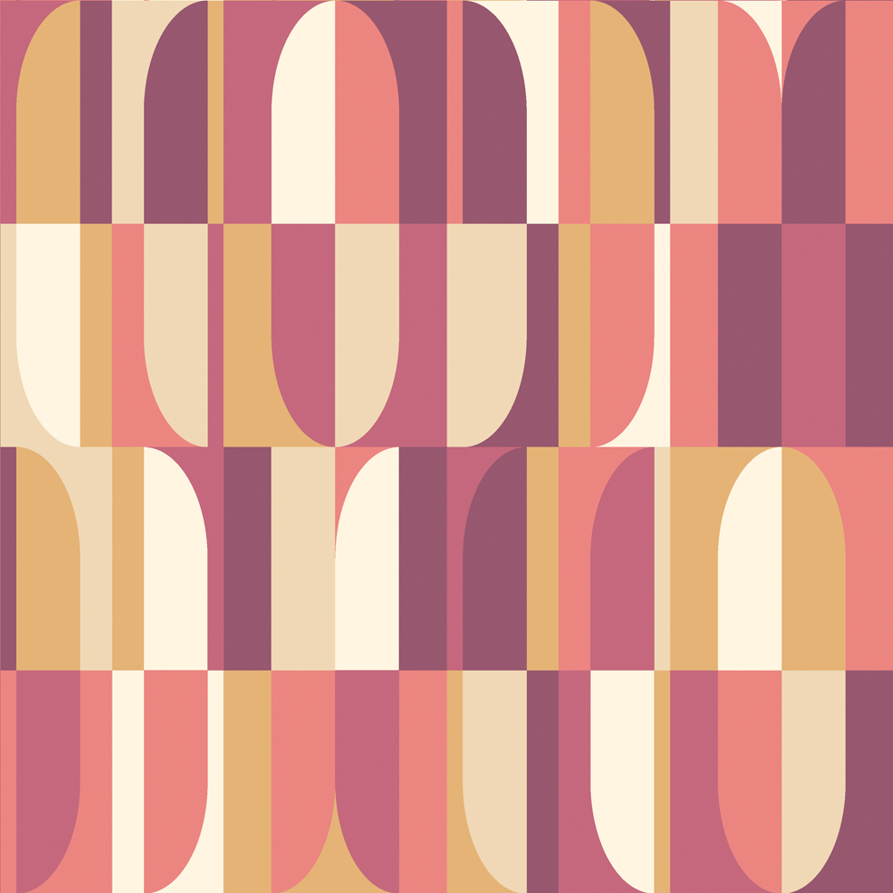 This lively wallpaper design boasts a playful, all-over graphic pattern featuring tall, lozenge-shaped blocks that mix and match. The design evokes the energy of the 1970s with its dynamic interplay of shapes. Its small scale makes it incredibly versatile, easily incorporated into any room and style of interior.