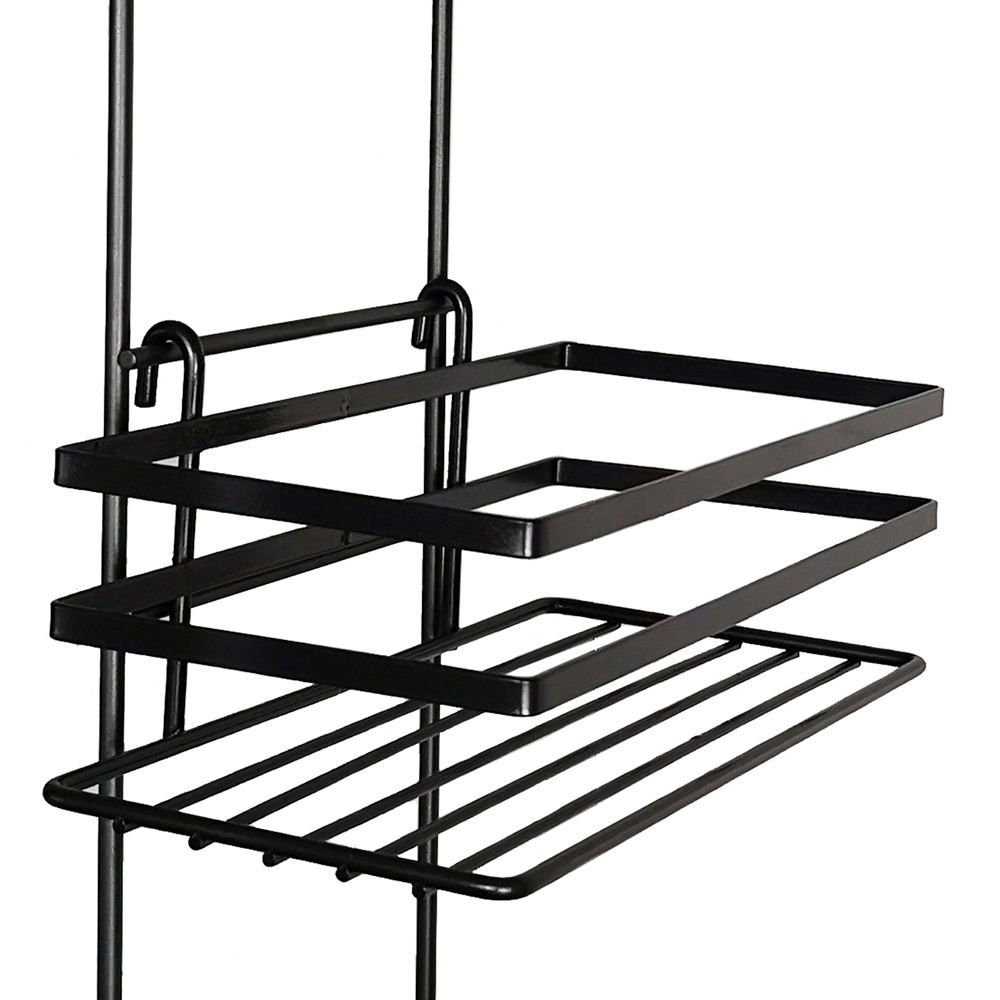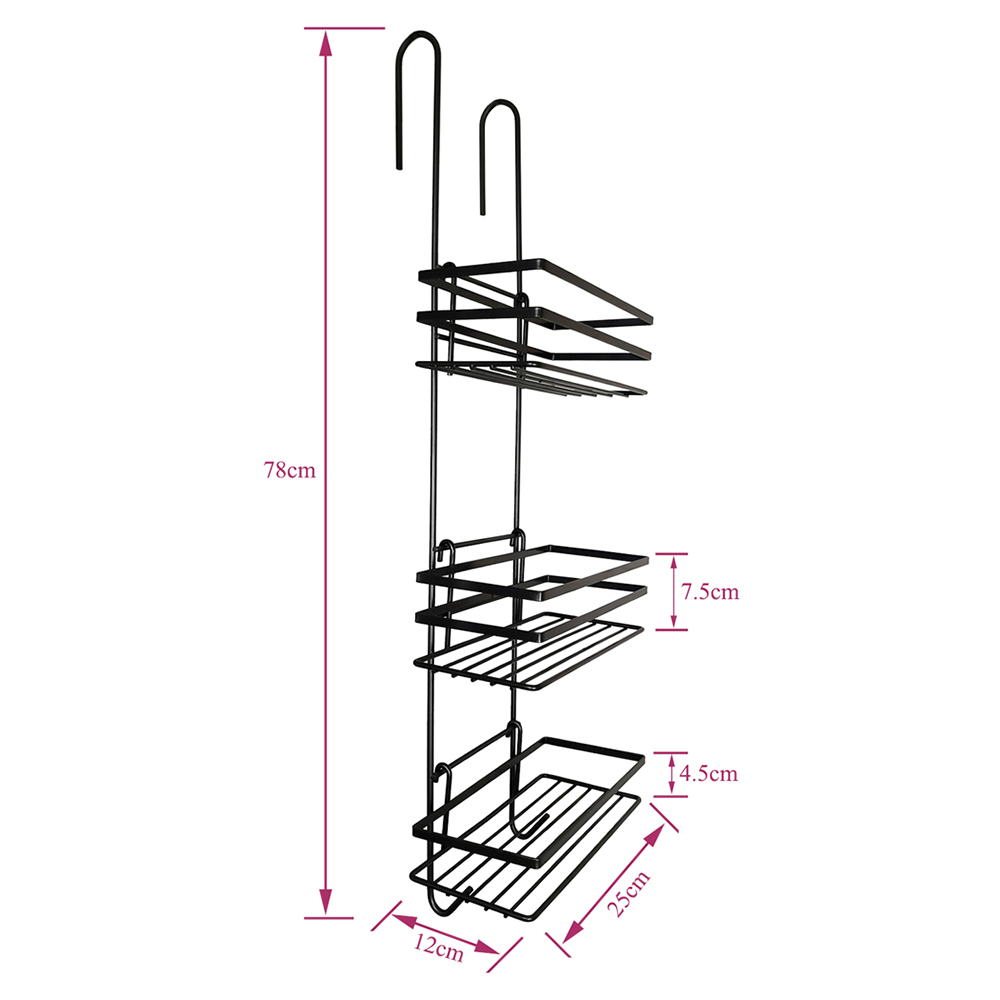 Elevate your bathroom organisation with the House of Home Black 3-Tier Shower Caddy. This stylish caddy provides ample space for all your toiletries, featuring a three-tiered design for efficient storage. Added hooks conveniently hold loofahs and body scrubs. Constructed from steel with a durable black nano-coating, this caddy offers a sleek and long-lasting solution. Suitable for mounting on wooden doors using screws (screws not included). Dimensions: 79cm high x 25cm wide x 12cm deep.