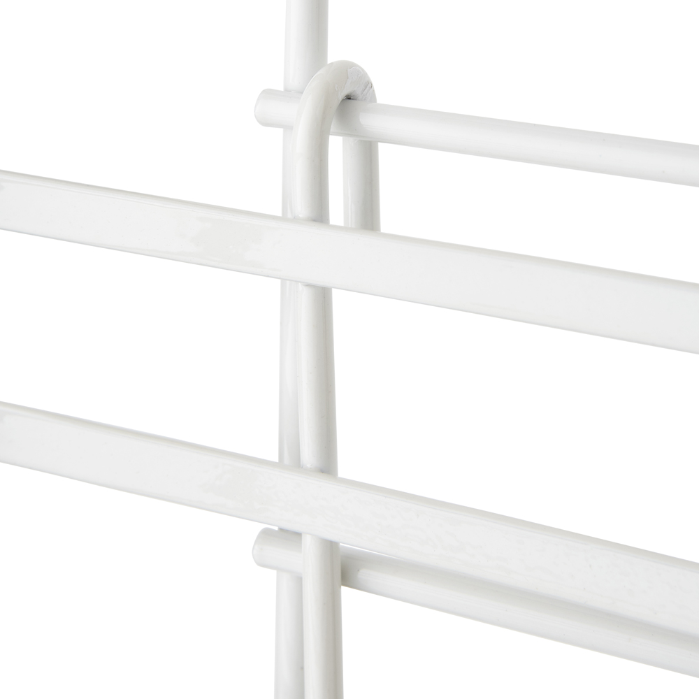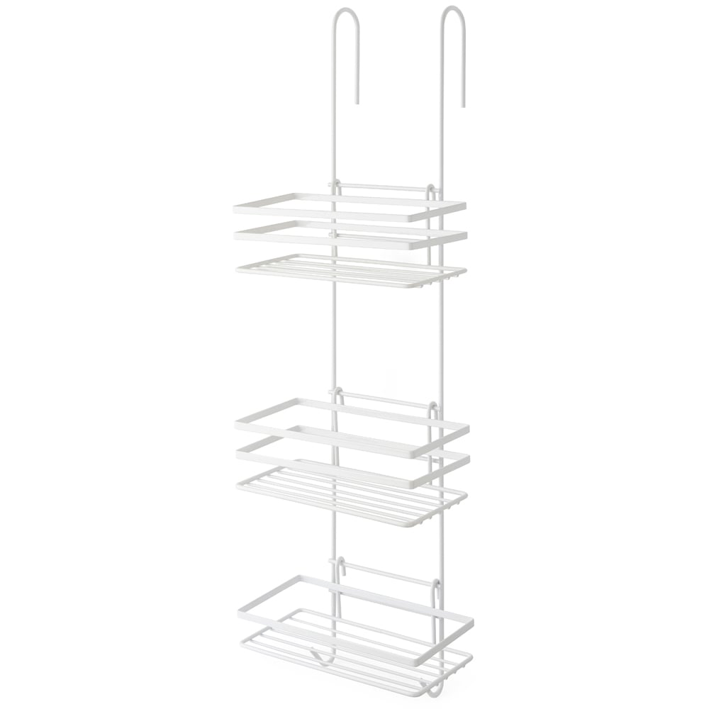 Elevate your bathroom organisation with the House of Home White 3-Tier Shower Caddy. This stylish caddy provides a premium shower storage solution, keeping your bath essentials neatly within reach. Its three tiers offer ample space for all your body care products, while added hooks conveniently hold your loofah and body scrubs. Crafted from steel with a durable white nano-coating, this caddy is designed for lasting use and adds a touch of elegance to any bathroom. For secure mounting on wooden doors, simply use screws (screws not included). Dimensions: 79cm H x 25cm W x 12cm D.