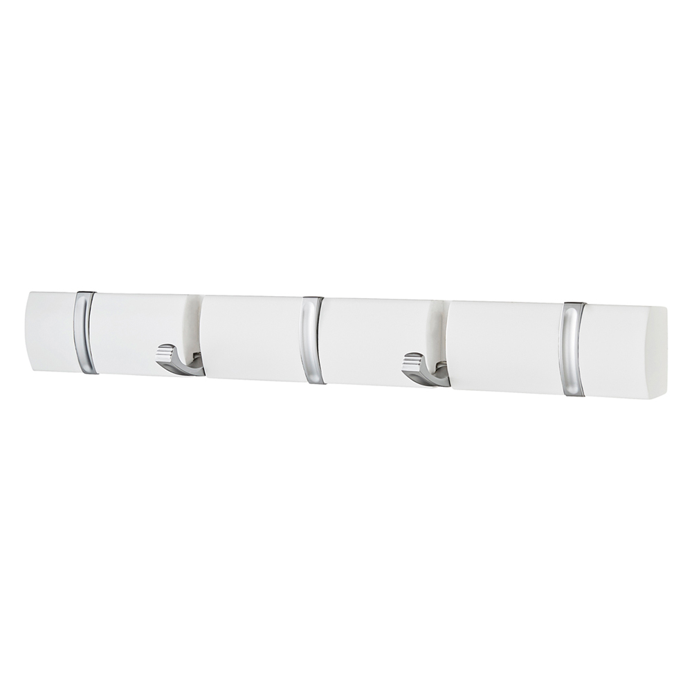 This House of Home White 5 Hook Clothes Rail is the perfect addition to any room. Five sleek, foldable nickel hooks provide convenient storage for coats and more, ideal for doors, hallways, or closets. The space-saving design includes all necessary fixings for easy installation. Dimensions: 46cm W x 5.5cm H x 2.8cm D.