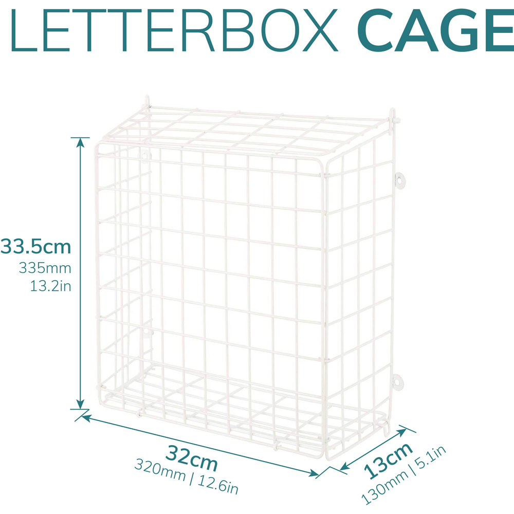A stylish and secure mail catcher, perfect for keeping your mail safe from pets. This white metal letter box basket features a lift-up lid for easy access and a padlock for added security. The sturdy metal construction, finished with a durable powder coat, ensures lasting style and protection. Mounting hardware is included for easy installation on wooden doors. Dimensions: 33.5cm H x 32cm W x 13cm D. The mail catcher is also easy to access and can be locked using a padlock.