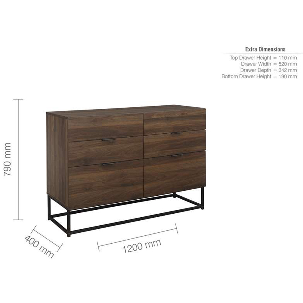 Houston 6 Drawer Walnut Wood Chest of Drawers