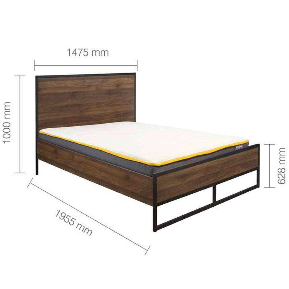 Add a touch of modern industrial chic to your bedroom with the Houston double bed. Its metal frame, finished in a walnut-effect wood, boasts a distinctive style inspired by contemporary architecture. The solid slatted base provides firm support and excellent airflow, ensuring lasting mattress comfort. Simple and easy to assemble, this elegant bed is perfect for a UK standard double mattress.