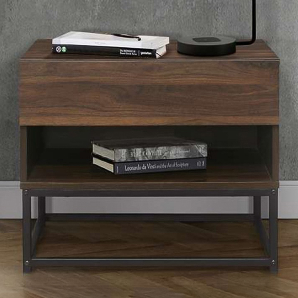 Elevate your bedroom's aesthetic with the Houston Bedside Table. Its metal frame, accented with walnut-effect details and a wood-effect finish, creates a distinctive, modern look inspired by contemporary architecture. A single drawer and internal shelf provide ample space for bed sheets and other night essentials, keeping your nightstand organized. The durable metal frame ensures lasting quality, while a simple wipe with a soft, dry cloth maintains its elegant shine. This bedside table adds a touch of sophisticated style to any bedroom setting.