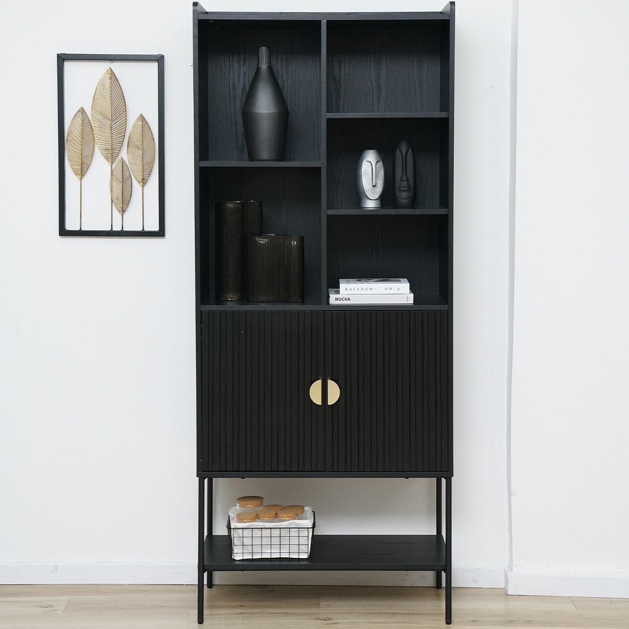 The Huxley display cabinet makes a stylish statement in any living room or hallway. Its contemporary design, featuring a deep black tone and wood panel-inspired cupboard fronts, cleverly blends modern and traditional aesthetics. Offering ample storage with both cupboards and shelves, it keeps your belongings organised while showcasing cherished books, ornaments, and photos. A truly practical and visually appealing addition to your home.