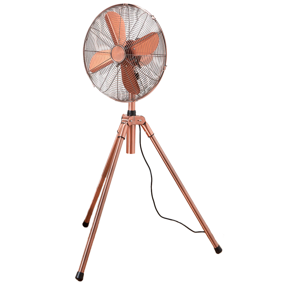 Keep cool in style with the 16-inch Copper Tripod Fan. Its vibrant copper finish and tall tripod base add a touch of modern chic to any room – bedroom, home office, or anywhere you need a refreshing breeze. Three speed settings and an oscillation function let you customise your airflow. Four high-quality metal blades deliver powerful performance.