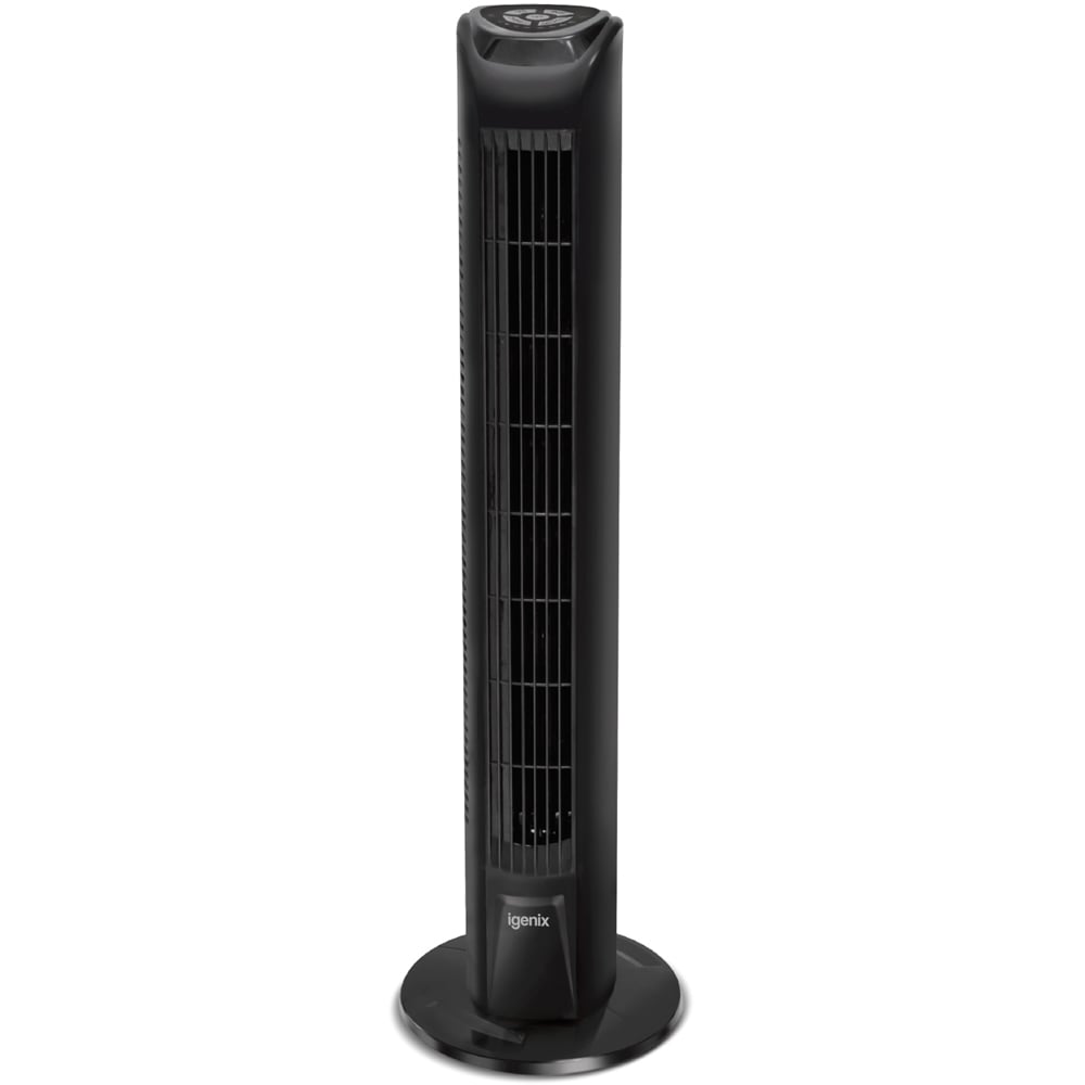 Cool down effortlessly with this 30-inch tower fan. Three speed settings let you dial in the perfect breeze, while the 7.5-hour timer ensures you wake up to a comfortably cool room. Enjoy enhanced air circulation thanks to the oscillation feature, all controlled conveniently with the included remote. This sleek white fan is the perfect blend of style and function.