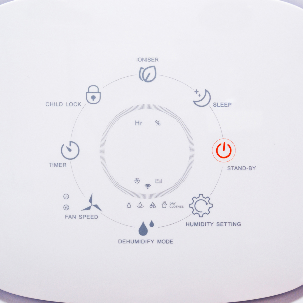Enhance your home's comfort with this dehumidifier, expertly designed for optimal performance and ease of use. Its efficient design extracts up to 12 litres of moisture in 24 hours, making it perfect for rooms up to 15m². Four dehumidifying modes, two fan speeds, and a 24-hour timer offer customizable control, while a sleep mode and ioniser function promote a restful and healthy atmosphere. The intuitive touch control LED panel simplifies operation, and a child lock ensures safety. Enjoy the convenience of continuous drainage. Compact and stylish with dimensions of H46 x W28 x D24cm, this dehumidifier seamlessly blends form and function.