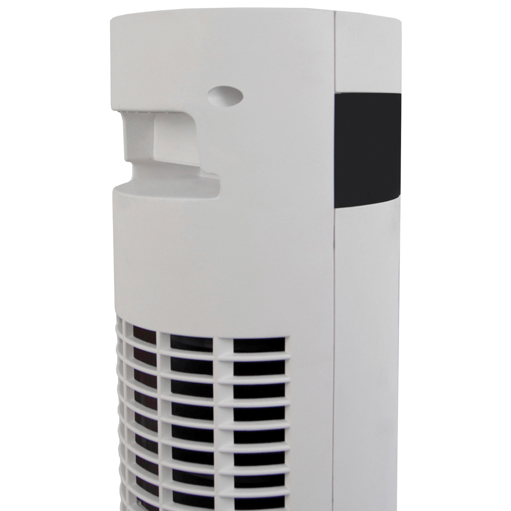 The Igenix White Digital Tower Fan, a substantial 43 inches tall, offers customizable comfort with three speed settings and three distinct wind modes: normal, natural, and night. Control is effortless via the integrated button panel or the included remote. Enjoy quiet operation and a smooth 85-degree oscillation for even air circulation. The LED display facilitates convenient remote control.