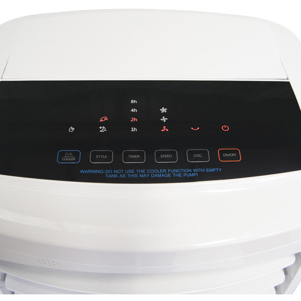 Enjoy year-round comfort with the Igenix White Evaporative Air Cooler. Its large 50L capacity and easy mobility make it perfect for any room. No venting or installation is needed – simply plug it in and go. Three speed settings (high, medium, low) let you customize your cooling, easily adjusted via the LED display or remote control. A 12-hour timer ensures a refreshing sleep, while the wide-angle oscillation distributes cool air evenly. Two ice boxes boost cooling power, delivering a powerful 798m3/hr airflow.