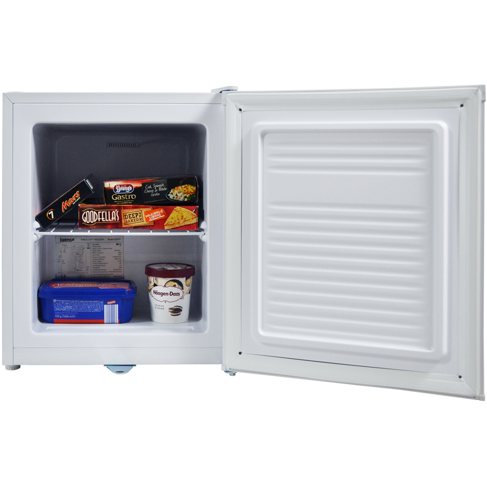 This Igenix tabletop freezer is a fantastic choice for smaller kitchens, student flats, or as a supplementary freezer in larger homes. Its compact design and reversible door offer unparalleled flexibility, fitting seamlessly into almost any space. Perfect for families or shared accommodation, the integrated door lock provides added security, keeping contents safely away from little ones. Boasting a generous 35-litre capacity and a convenient wire shelf for organised food storage, this freezer is a smart and practical addition to any setting, equally suitable for schools and offices.