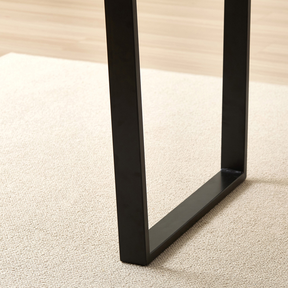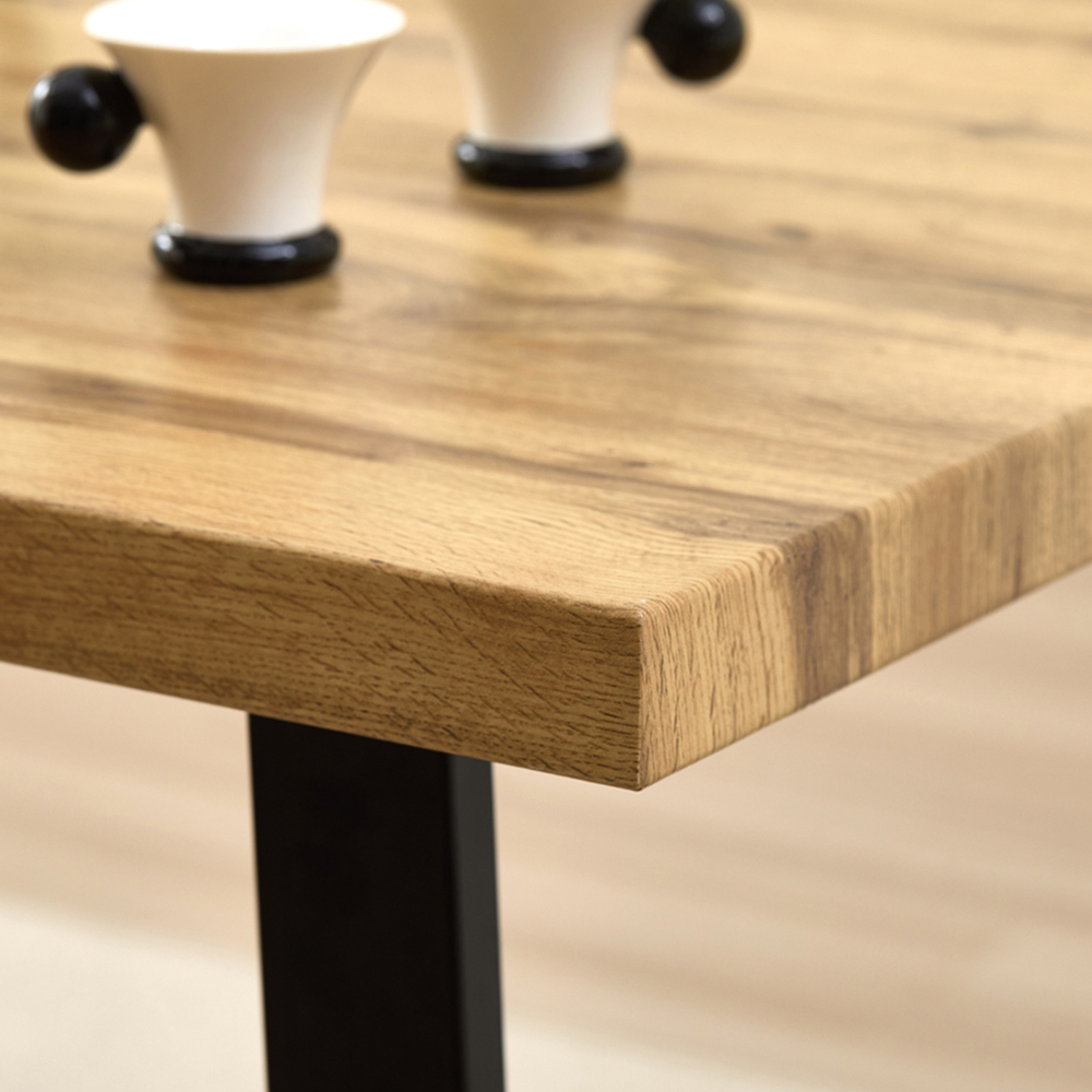 Transform your dining space with the Colorado 4-seater dining set. A natural wood tabletop rests on geometric matte black metal legs, creating a sleek, contemporary design. Four luxurious Charlotte blue velvet chairs, each with curved armrests and finely stitched detailing, complement the table perfectly. The chairs' sturdy matte black metal legs and high-quality velvet upholstery offer both comfort and style. This stunning set is ideal for hosting memorable dinners with family and friends, adding a touch of modern elegance to your home.
