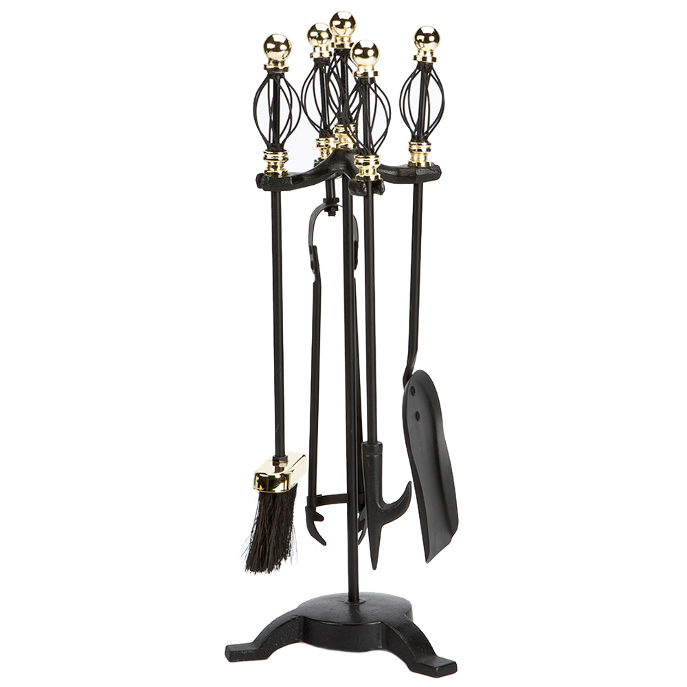 Elevate your fireplace with the Inglenook Fireside Companion Set. This five-piece set, crafted from robust cast iron with a striking spiral design and brass-finished handles, offers both practicality and style. The set includes a hearth brush, coal shovel, fire poker, tongs, and a compact storage stand, all designed for effortless hearth maintenance. The stand',s classic design ensures neat storage without compromising valuable space. A perfect blend of functionality and timeless aesthetics for any fireplace.