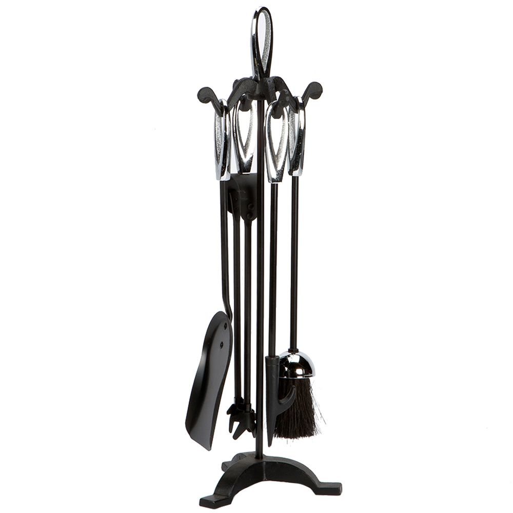 This five-piece fireside companion set is a must-have for any fireplace owner. Crafted from heavy-duty cast iron with practical chrome loop handles, this sturdy set includes a hearth brush, coal shovel, fire poker, tongs, and a convenient storage stand. The classic design adds character to your hearth, looking equally stylish whether in use during winter or proudly displayed throughout the summer months. Maintain a clean and efficient fire with this essential accessory.