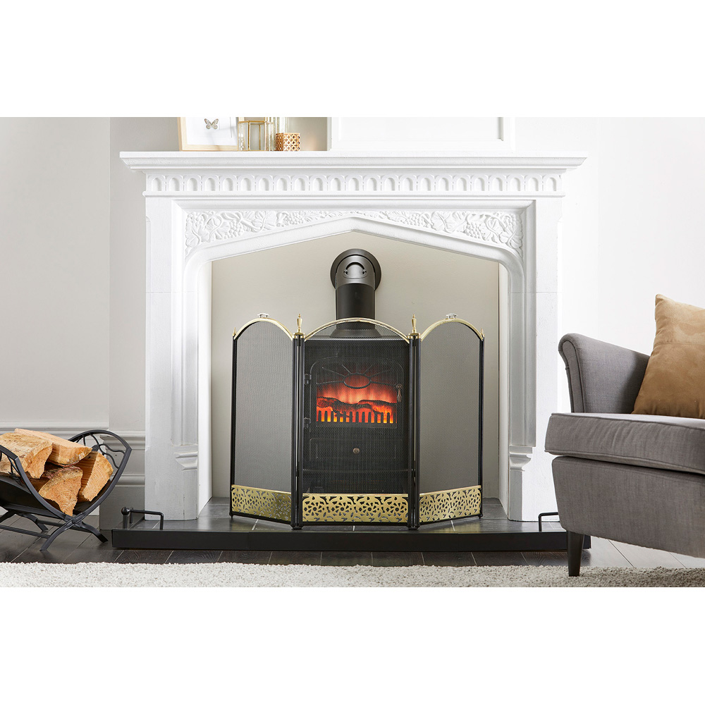 Inglenook Fireside Black and Brass Filigree Fire Guard