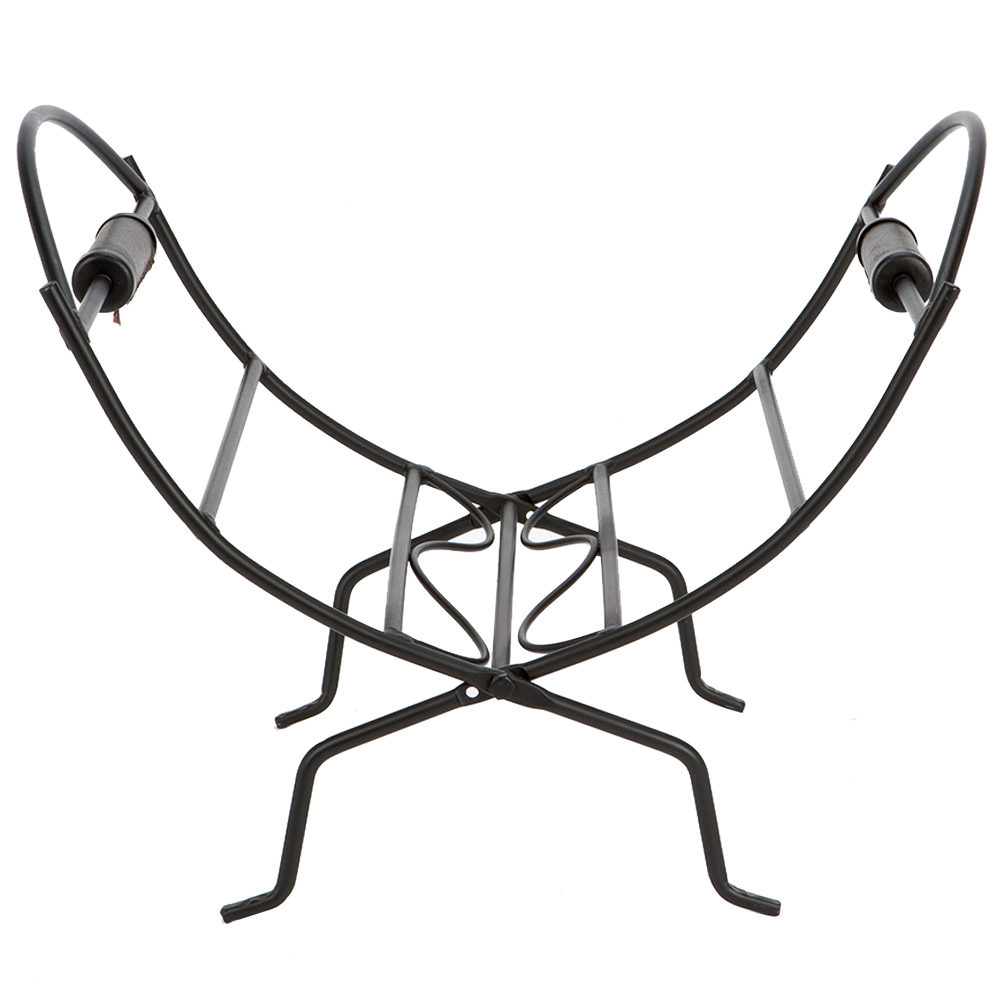 This stylish black metal log basket offers a practical and elegant solution for firewood storage. Its clever V-shaped design keeps logs securely in place, preventing messy spills and ensuring easy access. The open construction promotes excellent air circulation, helping your firewood dry thoroughly for a cleaner, more efficient burn. Crafted from robust cast iron, this basket is built for durability, comfortably holding even heavy logs without compromising stability. At 34 x 44cm, it provides ample storage for your fuel supply, adding a touch of refined rustic charm to any fireplace setting.