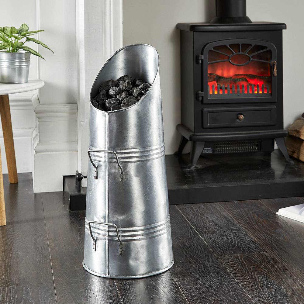 Enhance your fireside aesthetic with the Inglenook Fireside Galvanised Coal Hod. This practical and stylish coal hod is a must-have for any hearth, effortlessly complementing existing décor. Its generous capacity holds ample fuel for coal, logs, or kindling, whilst its compact footprint ensures it doesn',t overwhelm your living space. Standing at 58cm tall and featuring two convenient handles, refuelling your fire is made simple and efficient.