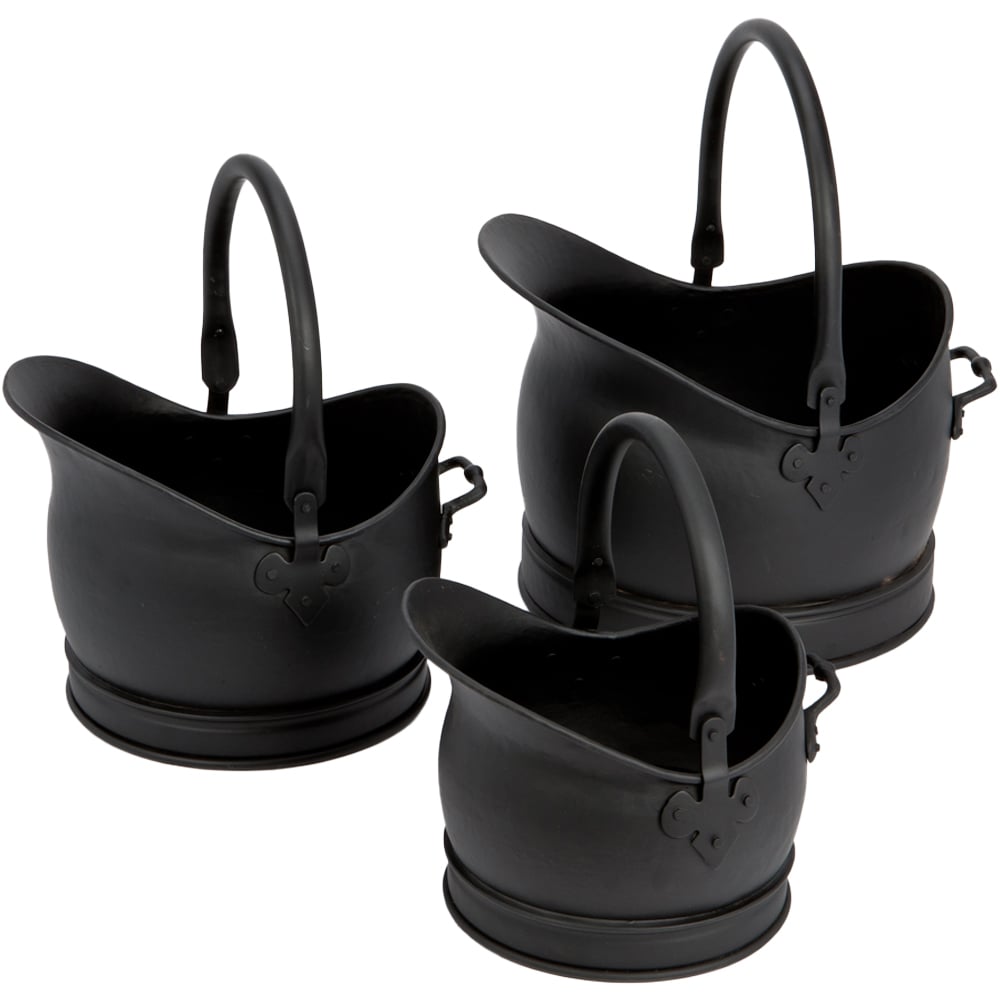 Elevate your fireplace with the Inglenook Fireside Premium Helmet Hod 3 Pack. This set of three coal buckets, crafted from premium cast iron, boasts a sophisticated all-black finish. Ideal for storing coal, fuel, or fireside tools, these durable and stylish buckets will enhance both the look and organisation of your hearth.